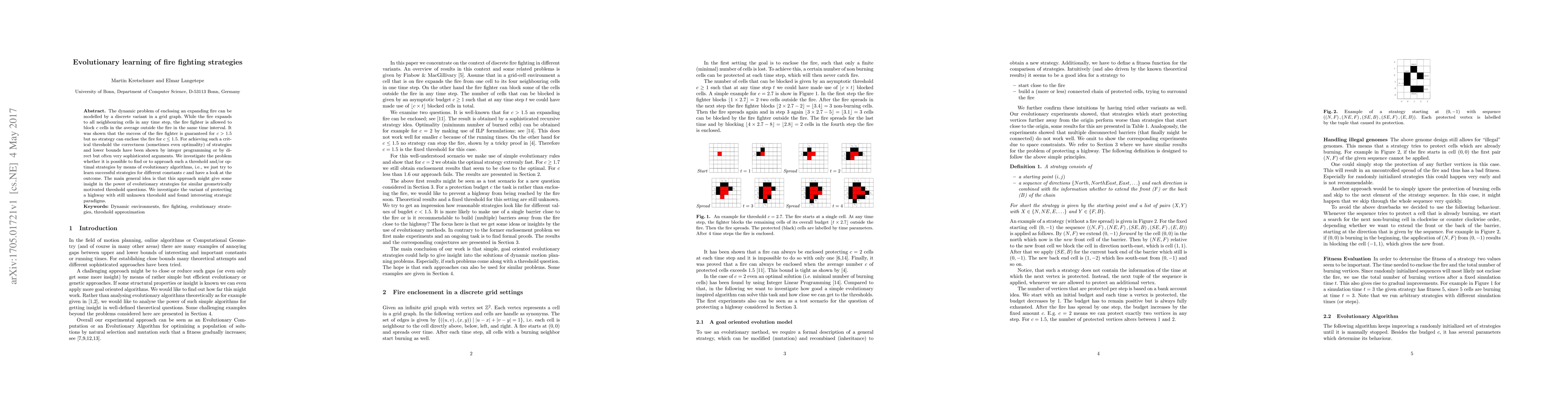 This research demonstrates the potential of evolutionary strategies in addressing geometrically motivated threshold problems, providing insights into learning successful strategies for dynamic environments like fire fighting.