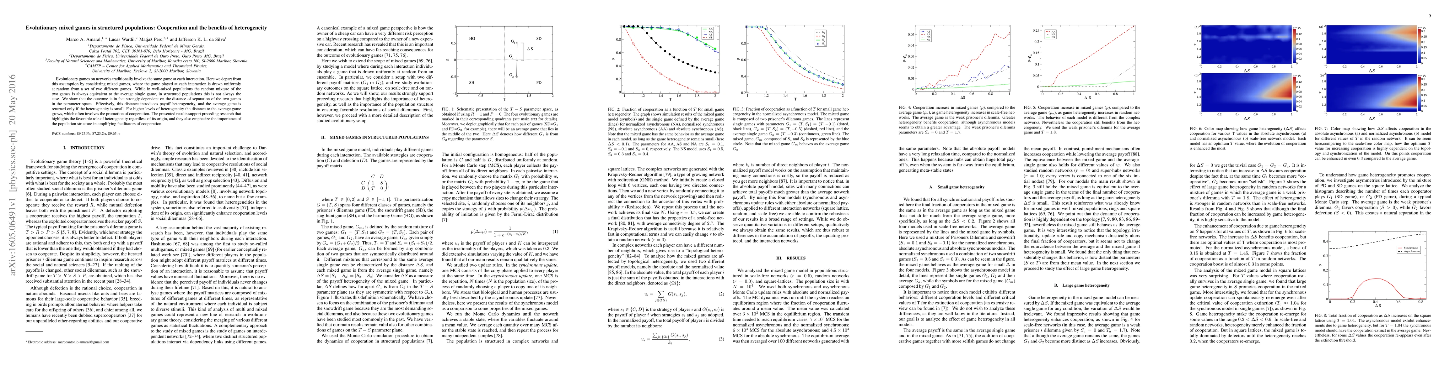 This paper explores evolutionary mixed games in structured populations, demonstrating that heterogeneity in payoffs, driven by the difference between games, can promote cooperation. Unlike in well-mixed populations, structured populations amplify the benefits of this heterogeneity, often leading to enhanced cooperative behavior.