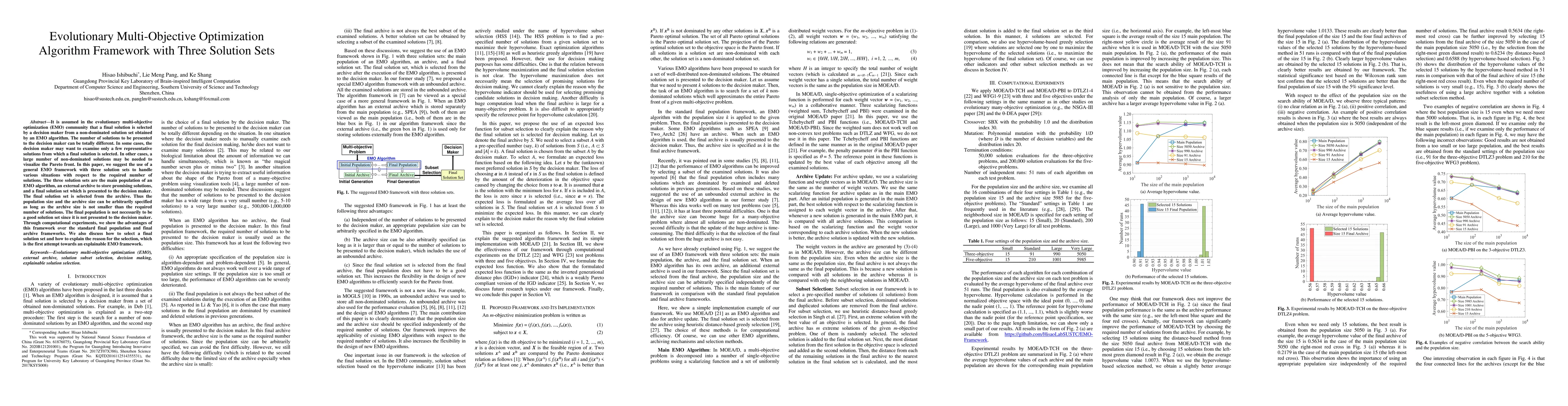 This paper proposes an evolutionary multi-objective optimization framework with three solution sets to manage varying requirements for the number of solutions presented to a decision maker. The framework includes a main population, an external archive, and a final solution set, demonstrating advantages over standard approaches through computational experiments and introducing initial steps towards an explainable EMO framework.