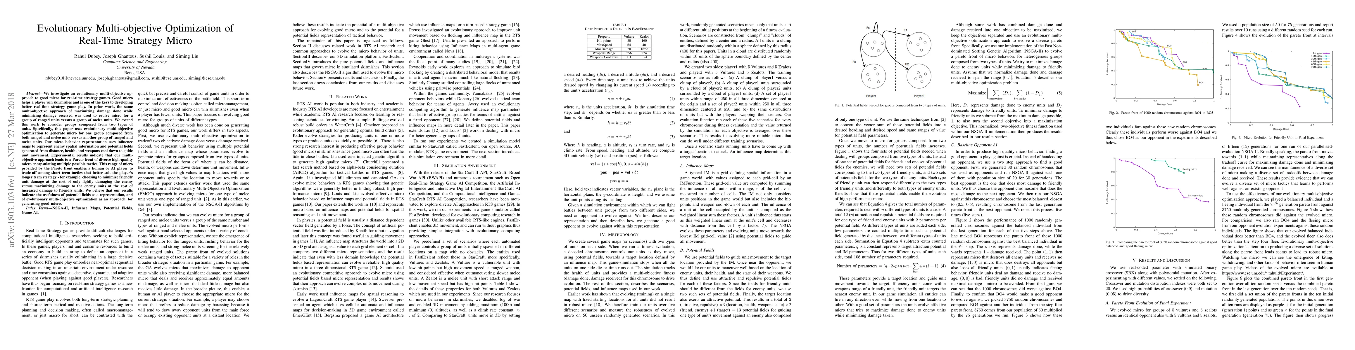 Researchers developed an evolutionary multi-objective approach to optimize microbehavior in real-time strategy games, generating diverse high-quality tactics for groups of ranged and melee units. Their method, which uses influence maps and potential fields, enables players to trade off between short-term tactics and longer-term strategies.