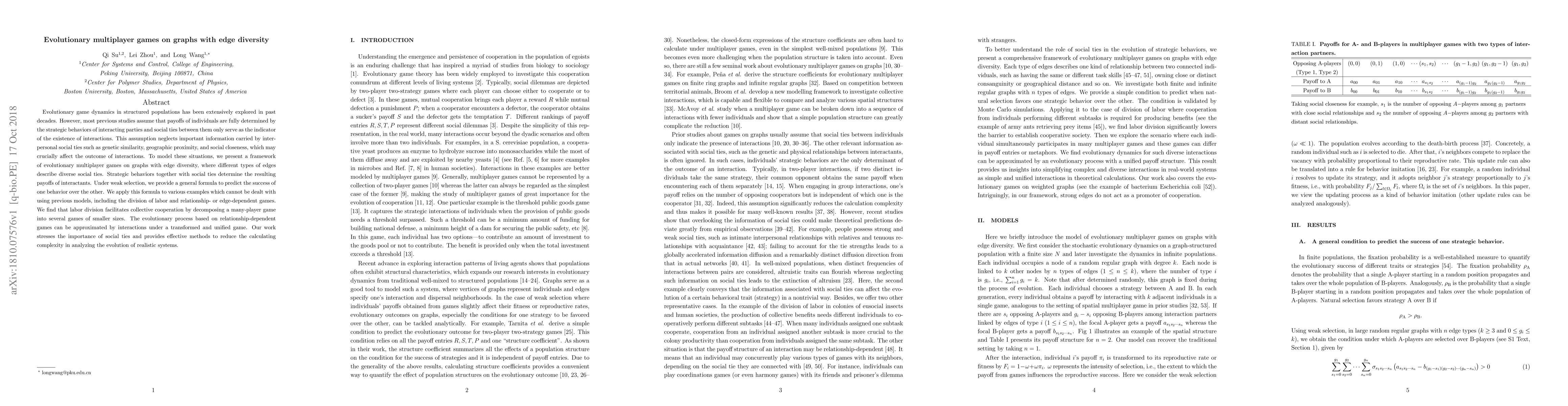 Evolutionary game dynamics in structured populations has been extensively explored in past decades. However, most previous studies assume that payoffs of individuals are fully determined by the strategic behaviors of interacting parties and social ties between them only serve as the indicator of the existence of interactions. This assumption neglects important information carried by inter-personal social ties such as genetic similarity, geographic proximity, and social closeness, which may crucially affect the outcome of interactions. To model these situations, we present a framework of evolutionary multiplayer games on graphs with edge diversity, where different types of edges describe diverse social ties. Strategic behaviors together with social ties determine the resulting payoffs of interactants. Under weak selection, we provide a general formula to predict the success of one behavior over the other. We apply this formula to various examples which cannot be dealt with using previous models, including the division of labor and relationship- or edge-dependent games. We find that labor division facilitates collective cooperation by decomposing a many-player game into several games of smaller sizes. The evolutionary process based on relationship-dependent games can be approximated by interactions under a transformed and unified game. Our work stresses the importance of social ties and provides effective methods to reduce the calculating complexity in analyzing the evolution of realistic systems.