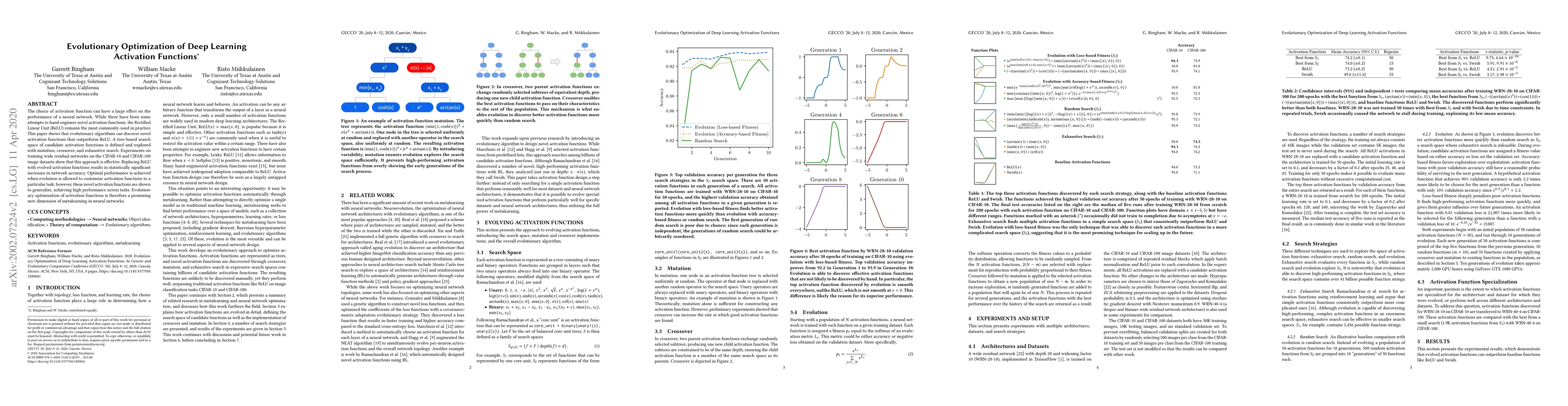 Researchers used evolutionary algorithms to discover novel activation functions that outperform ReLU, leading to statistically significant increases in neural network accuracy on multiple image datasets. These new functions generalize well across tasks, making them a promising approach for metalearning in neural networks.
