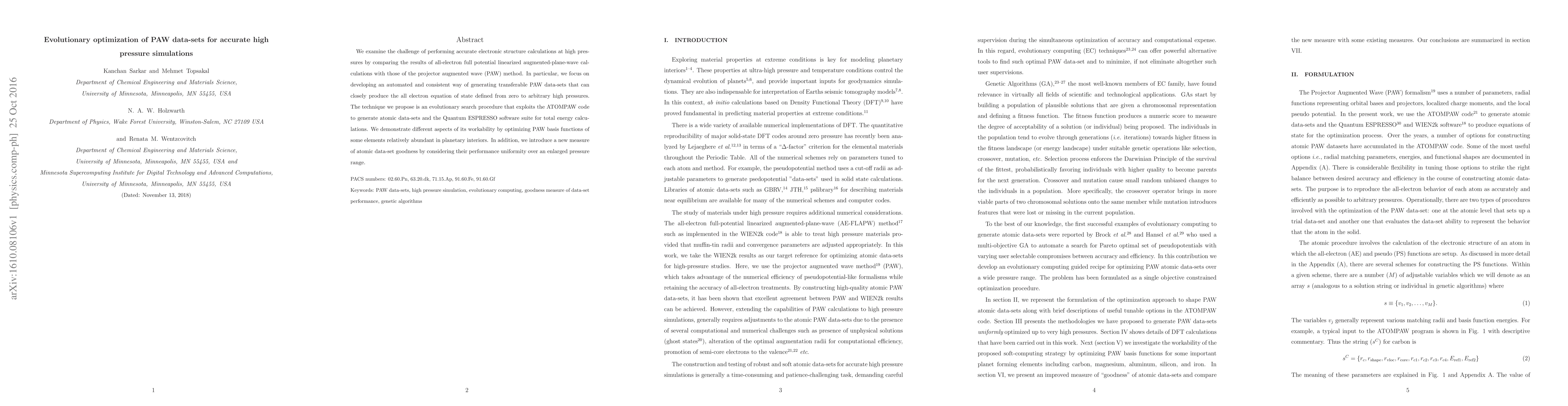 We examine the challenge of performing accurate electronic structure calculations at high pressures by comparing the results of all-electron full potential linearized augmented-plane-wave calculations with those of the projector augmented wave (PAW) method. In particular, we focus on developing an automated and consistent way of generating transferable PAW data-sets that can closely produce the all electron equation of state defined from zero to arbitrary high pressures. The technique we propose is an evolutionary search procedure that exploits the ATOMPAW code to generate atomic data-sets and the Quantum ESPRESSO software suite for total energy calculations. We demonstrate different aspects of its workability by optimizing PAW basis functions of some elements relatively abundant in planetary interiors. In addition, we introduce a new measure of atomic data-set goodness by considering their performance uniformity over an enlarged pressure range.