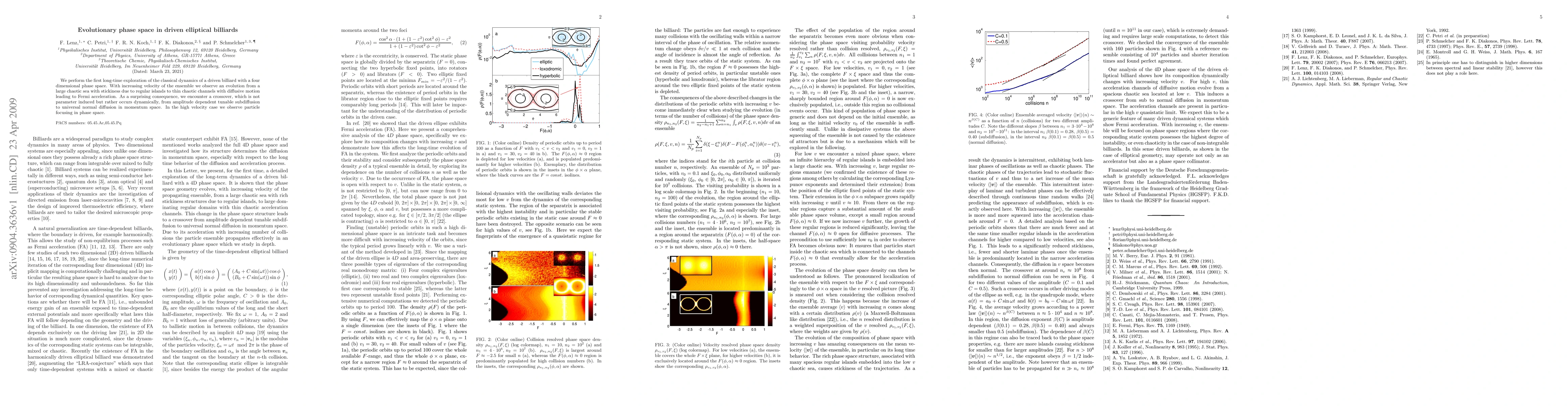 We perform the first long-time exploration of the classical dynamics of a driven billiard with a four dimensional phase space. With increasing velocity of the ensemble we observe an evolution from a large chaotic sea with stickiness due to regular islands to thin chaotic channels with diffusive motion leading to Fermi acceleration. As a surprising consequence, we encounter a crossover, which is not parameter induced but rather occurs dynamically, from amplitude dependent tunable subdiffusion to universal normal diffusion in momentum space. In the high velocity case we observe particle focusing in phase space.
