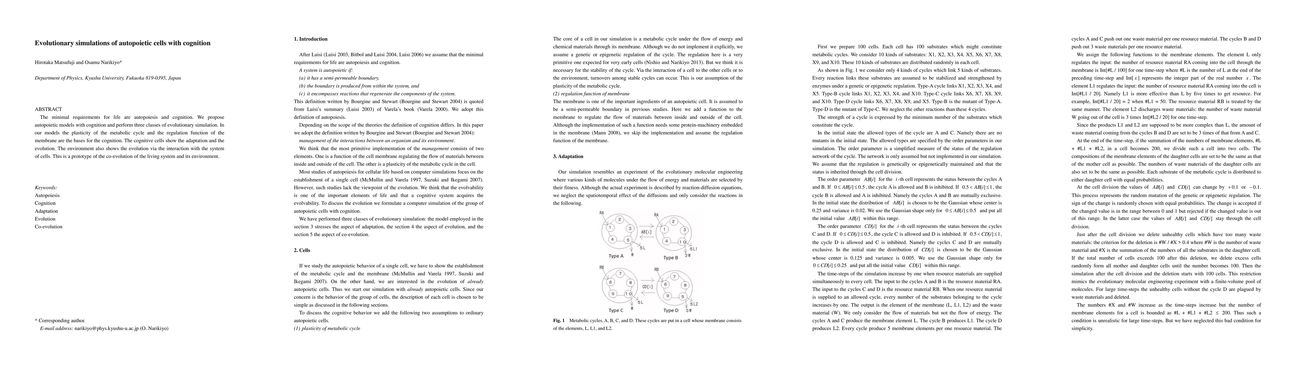 The minimal requirements for life are autopoiesis and cognition. We propose autopoietic models with cognition and perform three classes of evolutionary simulation. In our models the plasticity of the metabolic cycle and the regulation function of the membrane are the bases for the cognition. The cognitive cells show the adaptation and the evolution. The environment also shows the evolution via the interaction with the system of cells. This is a prototype of the co-evolution of the living system and its environment.