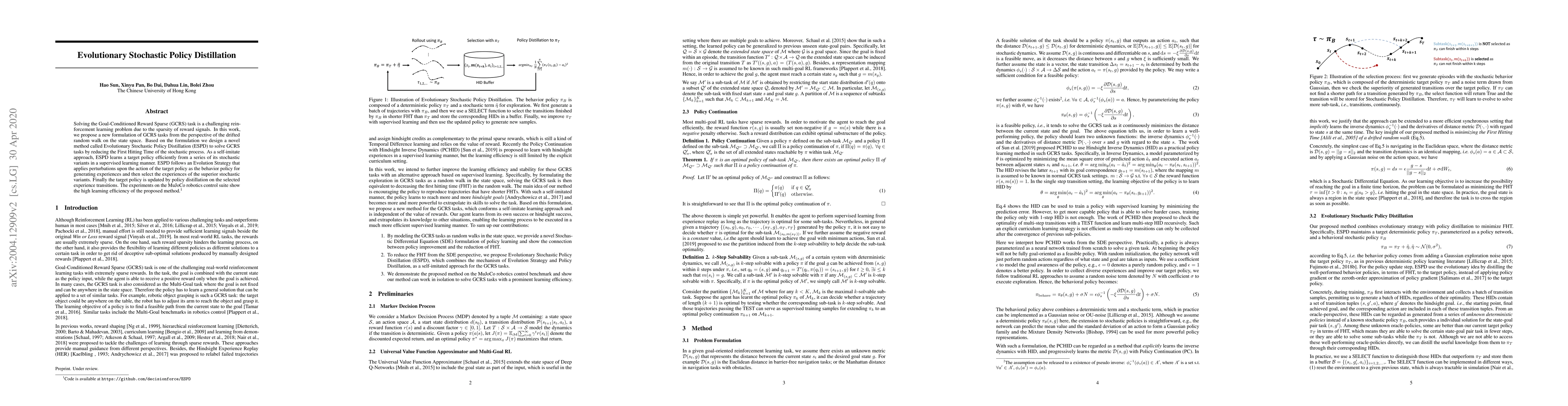 Researchers propose a new method called Evolutionary Stochastic Policy Distillation to solve challenging reinforcement learning problems with sparse reward signals. Their approach enables target policies to learn from variants through policy distillation, showing high learning efficiency in experiments.