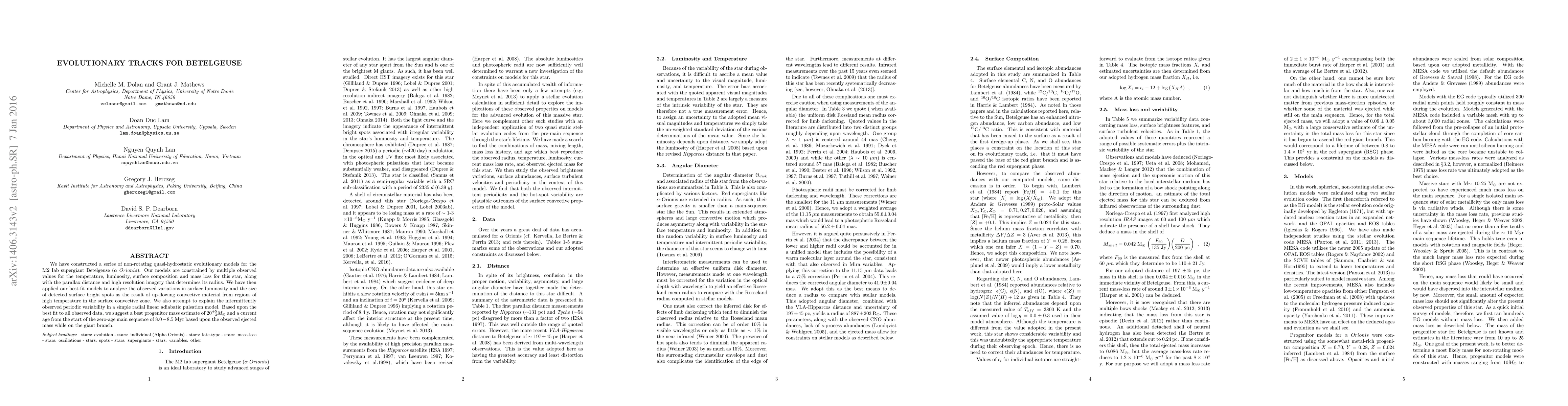 The study presents evolutionary models for Betelgeuse, constrained by its temperature, luminosity, surface composition, mass loss, and imagery. The models suggest a progenitor mass of 20 ± 5 $M_odot$ and an age of 8.0-8.5 Myr on the giant branch, explaining observed surface variations and periodic variability through convective up-flows and radial pulsations.