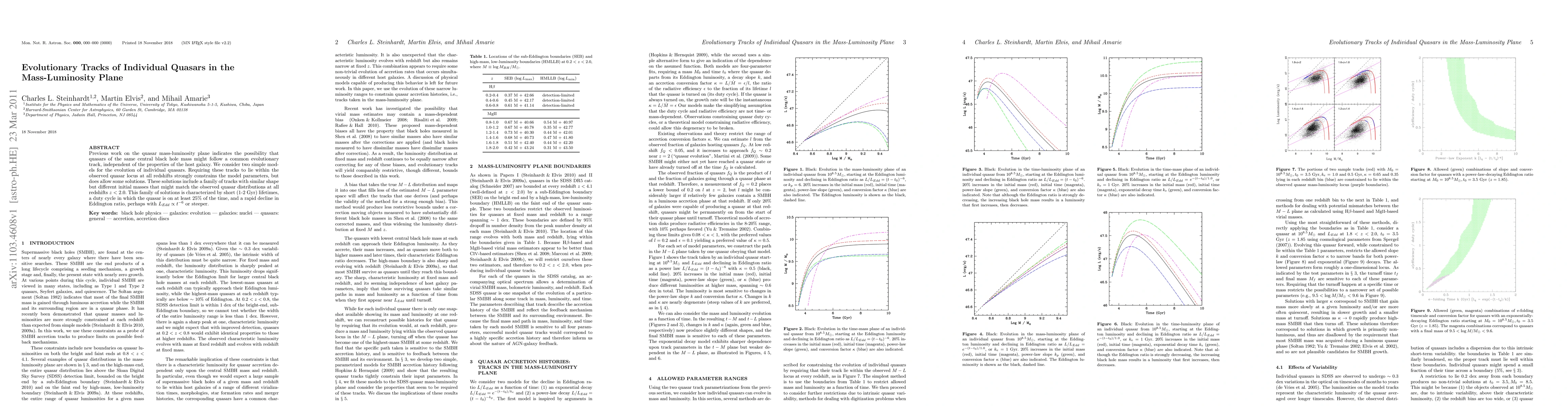 Previous work on the quasar mass-luminosity plane indicates the possibility that quasars of the same central black hole mass might follow a common evolutionary track, independent of the properties of the host galaxy. We consider two simple models for the evolution of individual quasars. Requiring these tracks to lie within the observed quasar locus at all redshifts strongly constrains the model parameters, but does allow some solutions. These solutions include a family of tracks with similar shape but different initial masses that might match the observed quasar distributions at all redshifts z < 2.0. This family of solutions is characterized by short (1-2 Gyr) lifetimes, a duty cycle in which the quasar is on at least 25% of the time, and a rapid decline in Eddington ratio, perhaps with L/L_Edd ~ t^-6 or steeper.