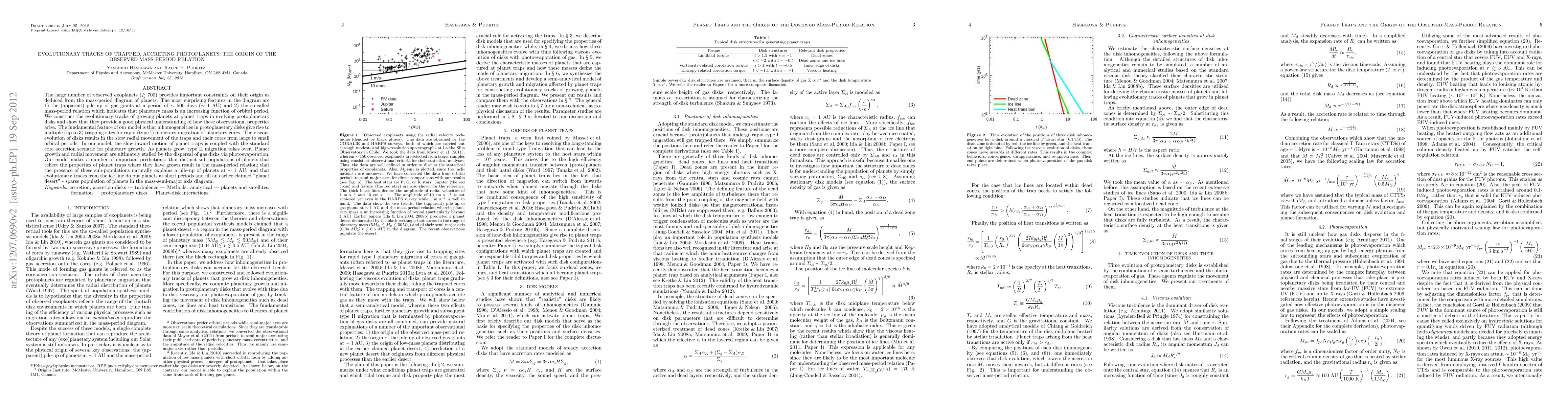 This paper explores the evolutionary paths of trapped, accreting protoplanets to explain the observed mass-period relation of exoplanets. It proposes that multiple trapping sites in protoplanetary disks lead to distinct sub-populations of planets, explaining the mass-period trend and the concentration of gas giants at around 1 AU.
