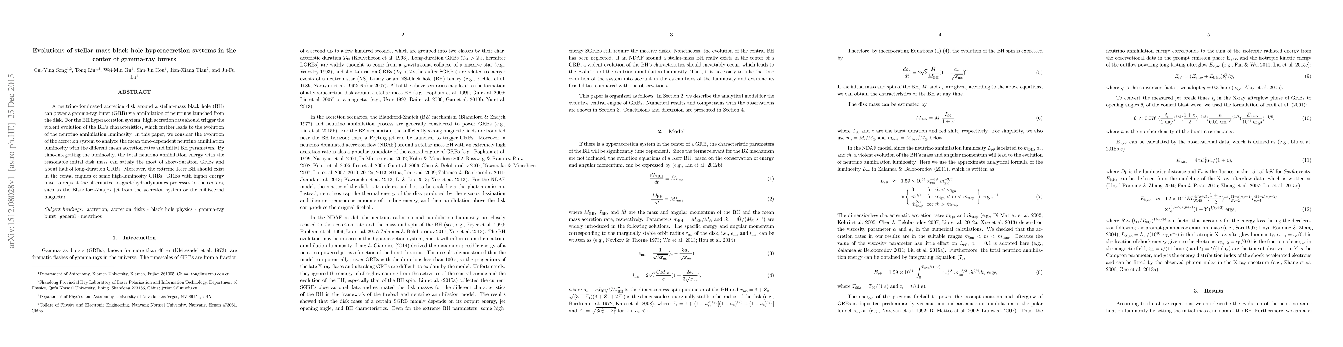 A neutrino-dominated accretion disk around a stellar-mass black hole (BH) can power a gamma-ray burst (GRB) via annihilation of neutrinos launched from the disk. For the BH hyperaccretion system, high accretion rate should trigger the violent evolution of the BH's characteristics, which further leads to the evolution of the neutrino annihilation luminosity. In this paper, we consider the evolution of the accretion system to analyze the mean time-dependent neutrino annihilation luminosity with the different mean accretion rates and initial BH parameters. By time-integrating the luminosity, the total neutrino annihilation energy with the reasonable initial disk mass can satisfy the most of short-duration GRBs and about half of long-duration GRBs. Moreover, the extreme Kerr BH should exist in the cental engines of some high-luminosity GRBs. GRBs with higher energy have to request the alternative magnetohydrodynamics processes in the centers, such as the Blandford-Znajek jet from the accretion system or the millisecond magnetar.