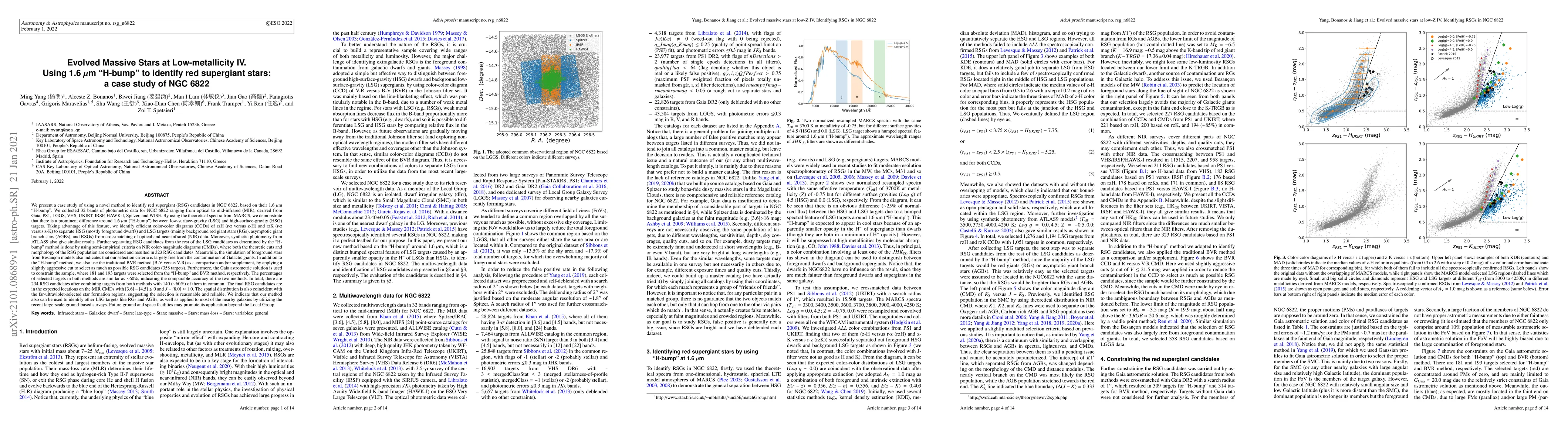 Researchers identify 234 red supergiant stars in the low-metallicity galaxy NGC 6822 using a novel method based on their 1.6 μm 'H-bump', achieving comparable accuracy with traditional methods.