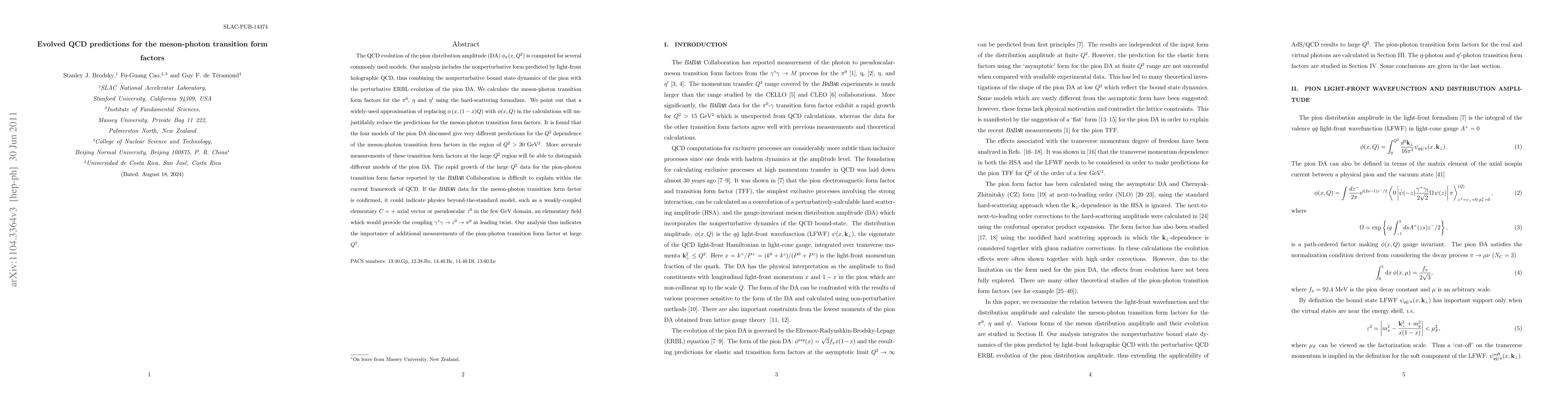 This paper investigates the QCD evolution of pion distribution amplitudes and calculates meson-photon transition form factors for $\pi^0$, $\eta$, and $\eta^\prime$ using different models. It highlights significant differences in predictions for large $Q^2$ and suggests that the BaBar data might hint at physics beyond the standard model.