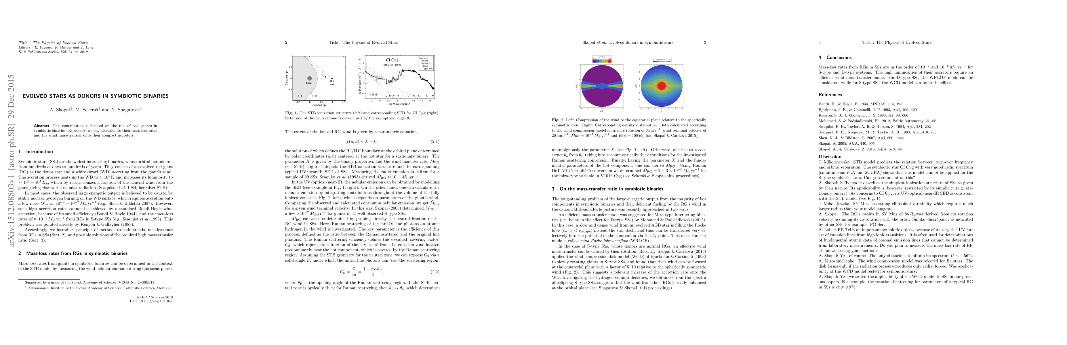 This contribution is focused on the role of cool giants in symbiotic binaries. Especially, we pay attention to their mass-loss rates and the wind mass-transfer onto their compact accretors.