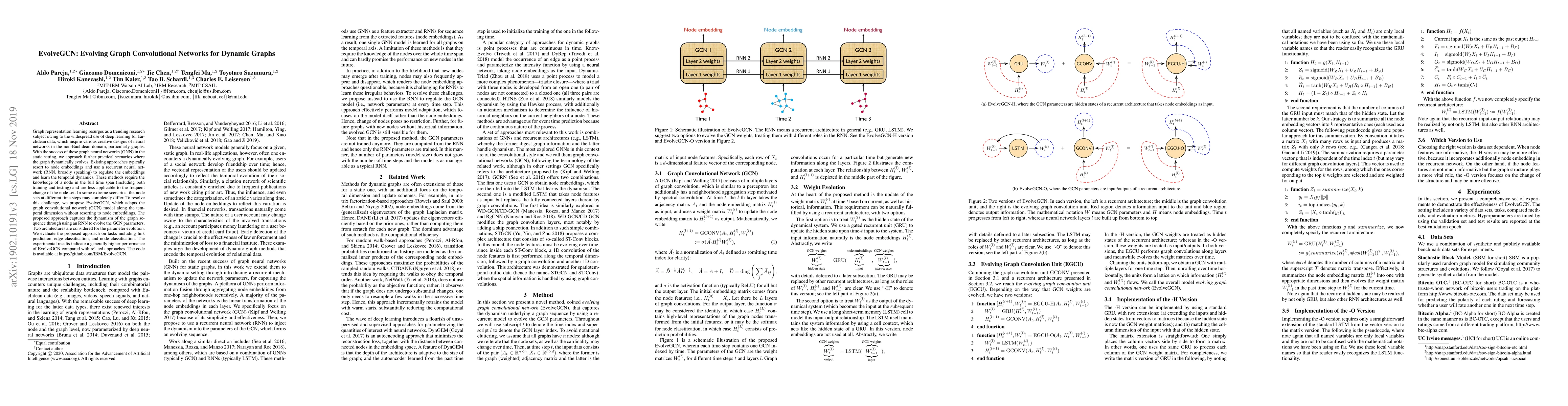 EvolveGCN proposes a method to adapt graph convolutional networks for dynamic graphs without relying on node embeddings, achieving generally higher performance in tasks like link prediction and edge classification.