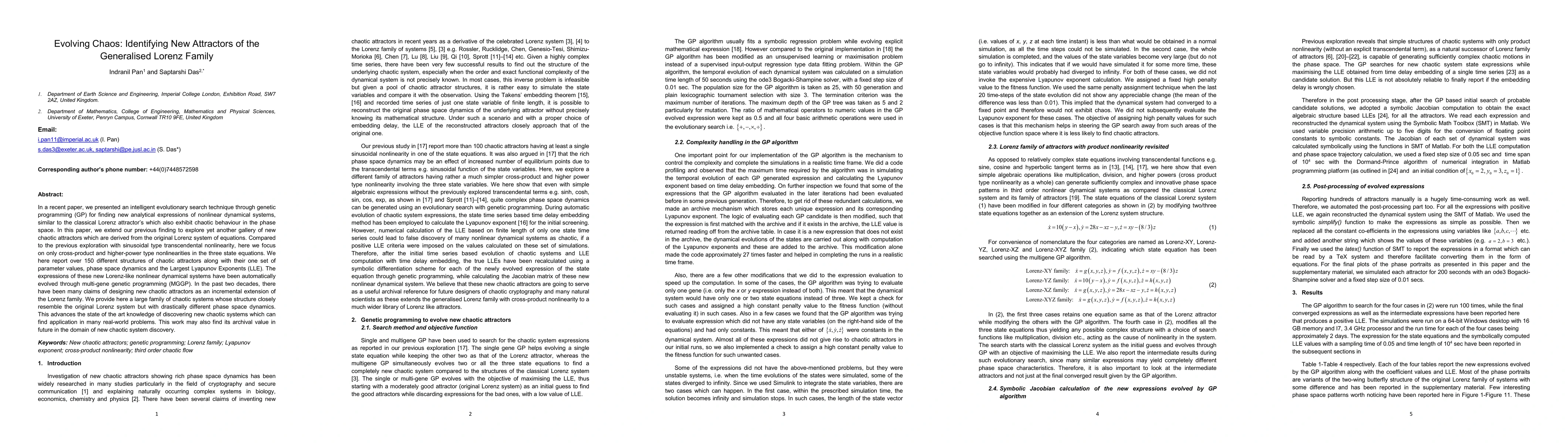 This paper utilizes genetic programming to evolve new analytical expressions of nonlinear dynamical systems resembling the Lorenz attractor, focusing on cross-product and higher-power nonlinearities. It reports over 150 distinct chaotic attractors derived from the generalized Lorenz family, contributing significantly to the discovery of novel chaotic systems.