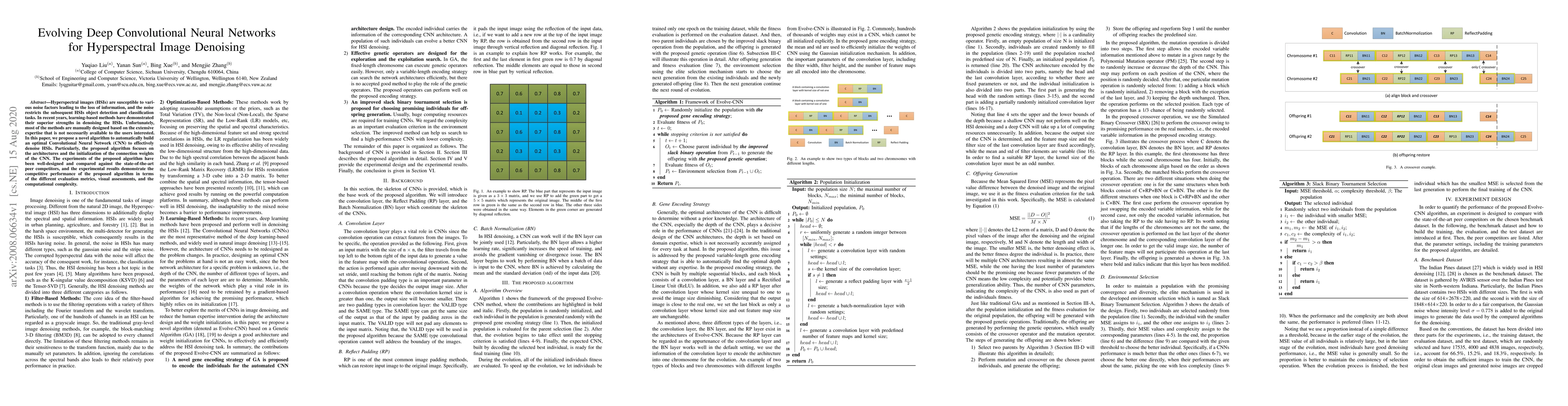 The paper proposes an algorithm, Evolve-CNN, to automatically design optimal Convolutional Neural Networks (CNNs) for hyperspectral image (HSI) denoising. It focuses on CNN architectures and weight initialization, using a genetic algorithm for architecture search and Gaussian initialization for weights.