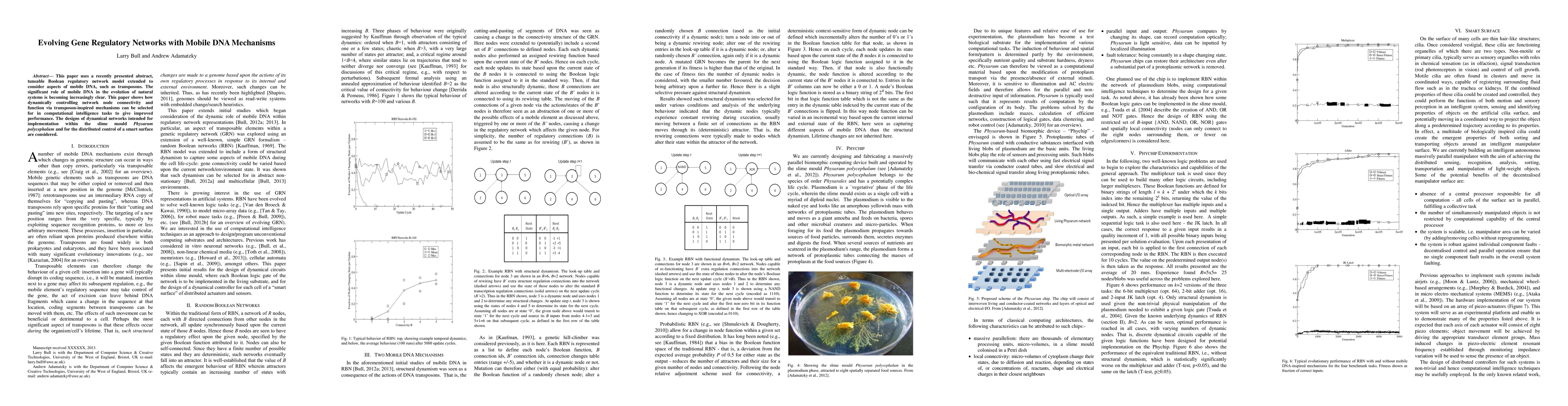 This paper uses a recently presented abstract, tuneable Boolean regulatory network model extended to consider aspects of mobile DNA, such as transposons. The significant role of mobile DNA in the evolution of natural systems is becoming increasingly clear. This paper shows how dynamically controlling network node connectivity and function via transposon-inspired mechanisms can be selected for in computational intelligence tasks to give improved performance. The designs of dynamical networks intended for implementation within the slime mould Physarum polycephalum and for the distributed control of a smart surface are considered.