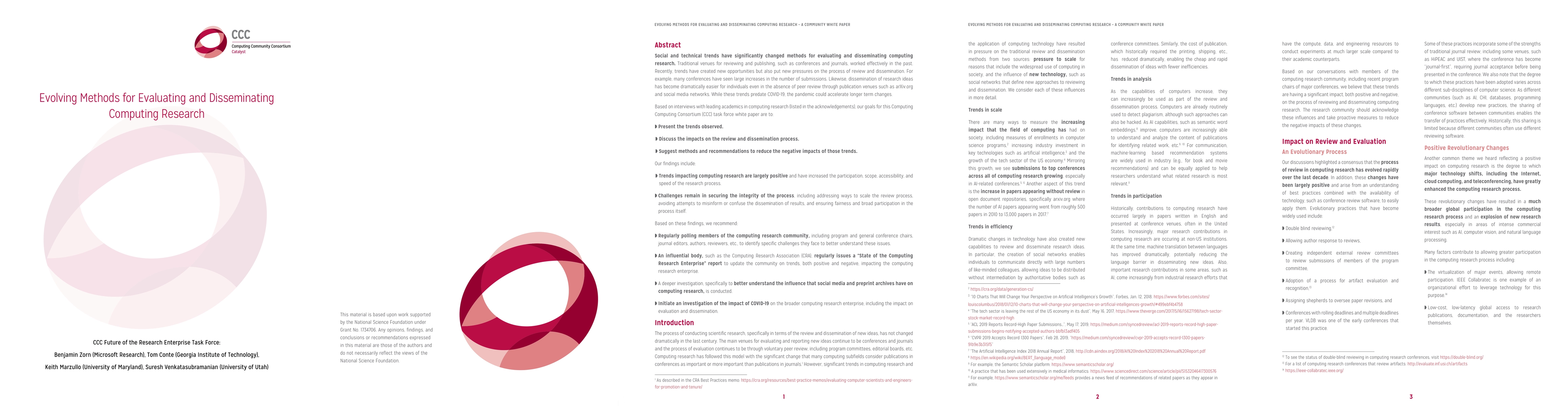 This paper examines evolving methods for evaluating and disseminating computing research, noting positive trends like increased participation and accessibility but also challenges in maintaining integrity and fairness. Recommendations include regular community polling, periodic comprehensive reports, and deeper studies on the impact of social media and preprints.