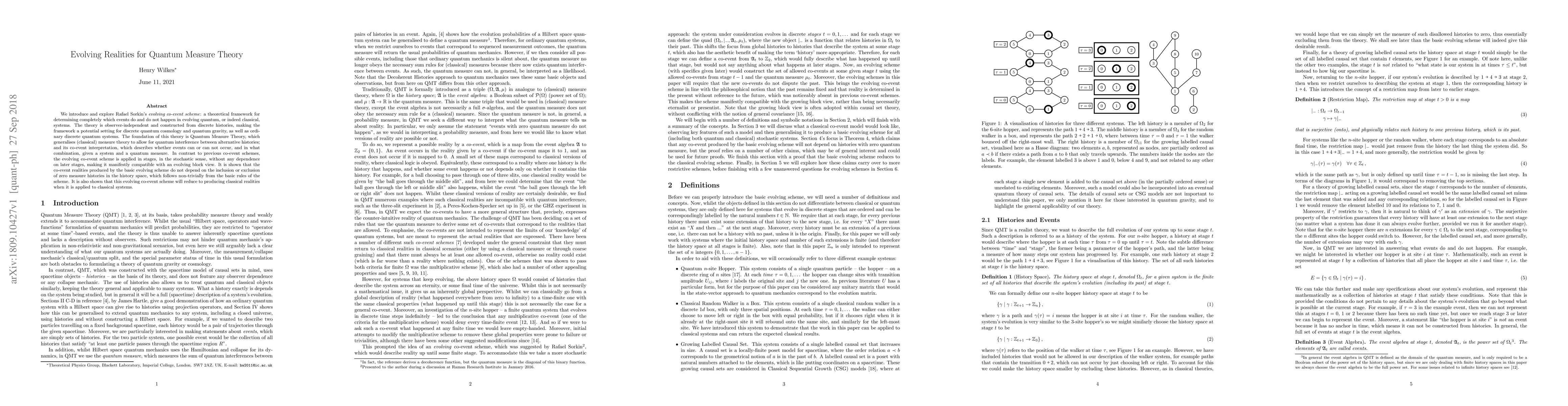 This paper introduces Rafael Sorkin's evolving co-event scheme, a novel theoretical framework for determining event realities in quantum and classical systems. It is based on Quantum Measure Theory, which allows for quantum interference, and is compatible with an evolving block view, producing realities independent of zero measure histories.