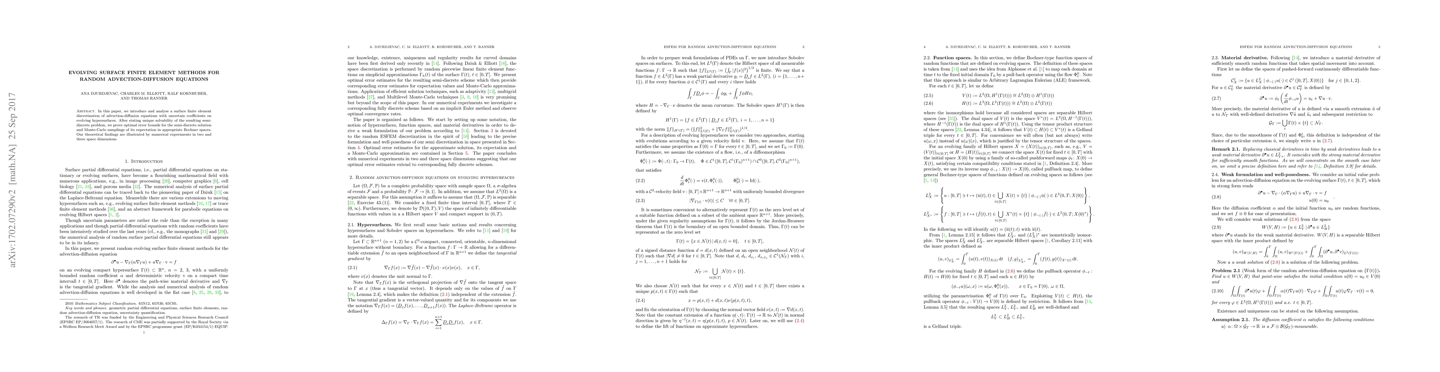 This paper develops a surface finite element method for solving advection-diffusion equations with uncertain coefficients on evolving surfaces, proving unique solvability and optimal error bounds. Numerical experiments validate the theoretical findings in both 2D and 3D settings.