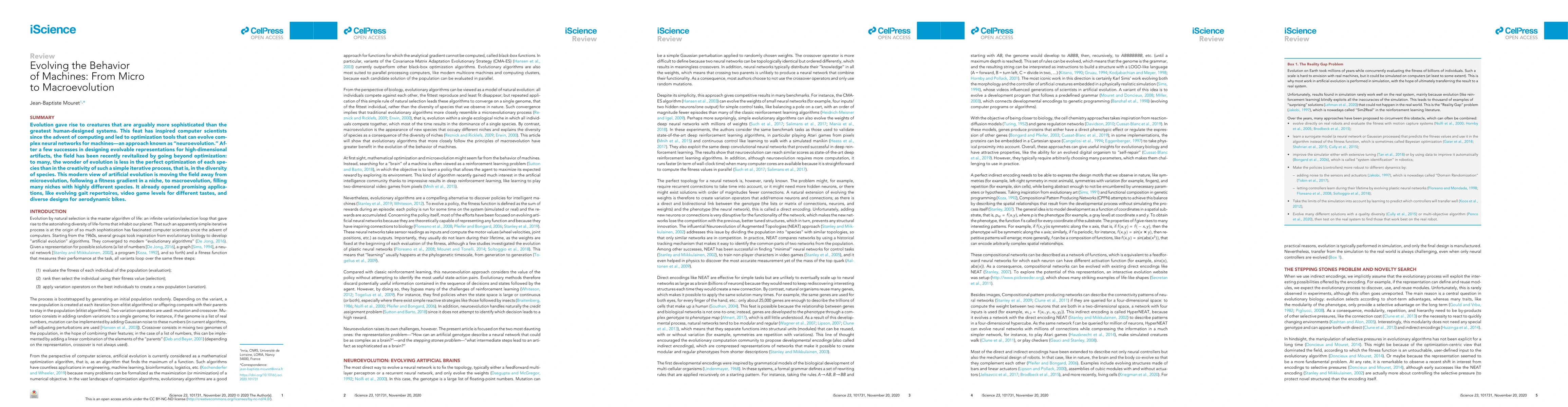 Evolution gave rise to creatures that are arguably more sophisticated than the greatest human-designed systems. This feat has inspired computer scientists since the advent of computing and led to optimization tools that can evolve complex neural networks for machines -- an approach known as "neuroevolution". After a few successes in designing evolvable representations for high-dimensional artifacts, the field has been recently revitalized by going beyond optimization: to many, the wonder of evolution is less in the perfect optimization of each species than in the creativity of such a simple iterative process, that is, in the diversity of species. This modern view of artificial evolution is moving the field away from microevolution, following a fitness gradient in a niche, to macroevolution, filling many niches with highly different species. It already opened promising applications, like evolving gait repertoires, video game levels for different tastes, and diverse designs for aerodynamic bikes.