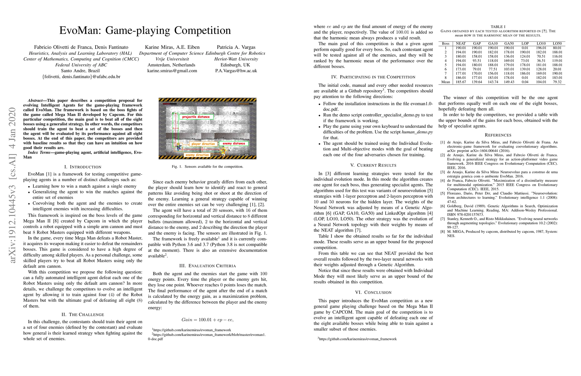 This paper proposes a competition to evolve Intelligent Agents for the EvoMan game-playing framework, aiming to beat all eight bosses using a generalist strategy. Competitors are provided with baseline results to gauge their agent's performance against all bosses.