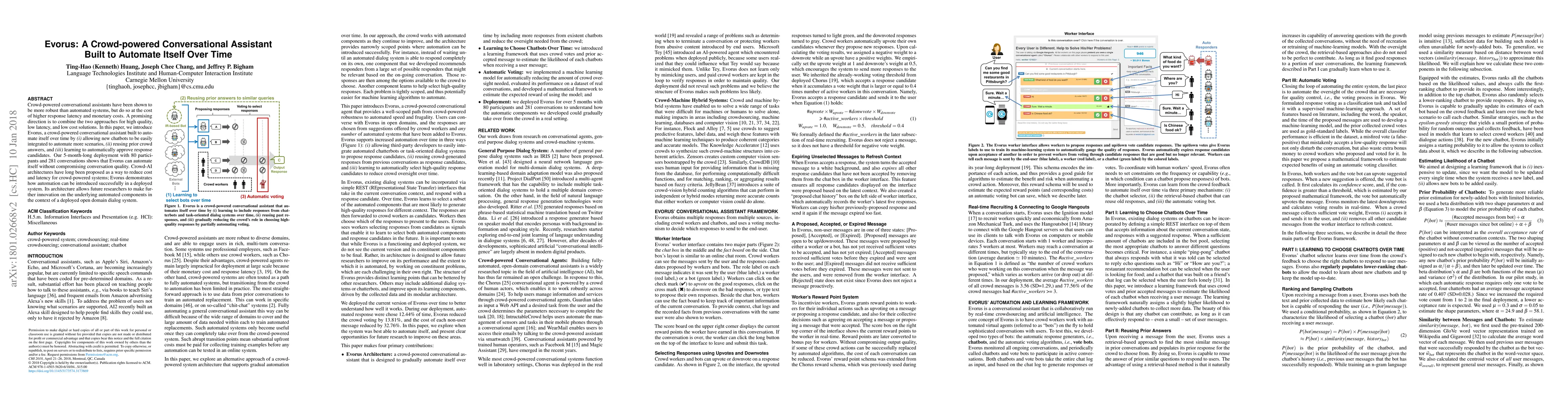 A new system called Evorus automates itself over time using a combination of crowd-powered and AI-driven approaches, achieving high-quality conversations with low latency and cost.