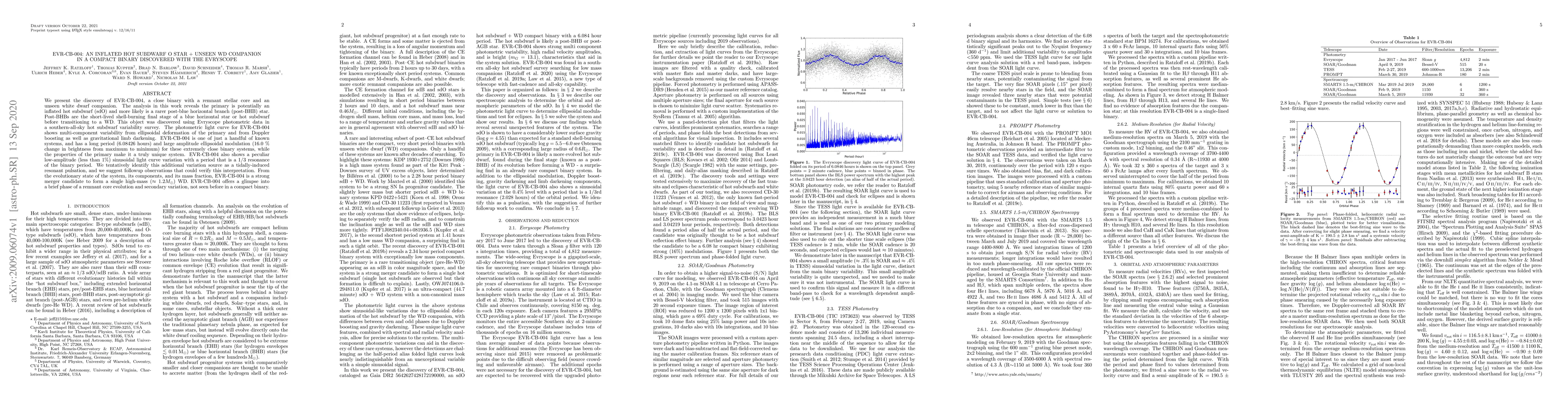 EVR-CB-004 is a rare post-blue horizontal branch star in a close binary with an unseen white dwarf companion, discovered via Evryscope data. The system exhibits unique variability and suggests potential for future merger into a high-mass white dwarf.