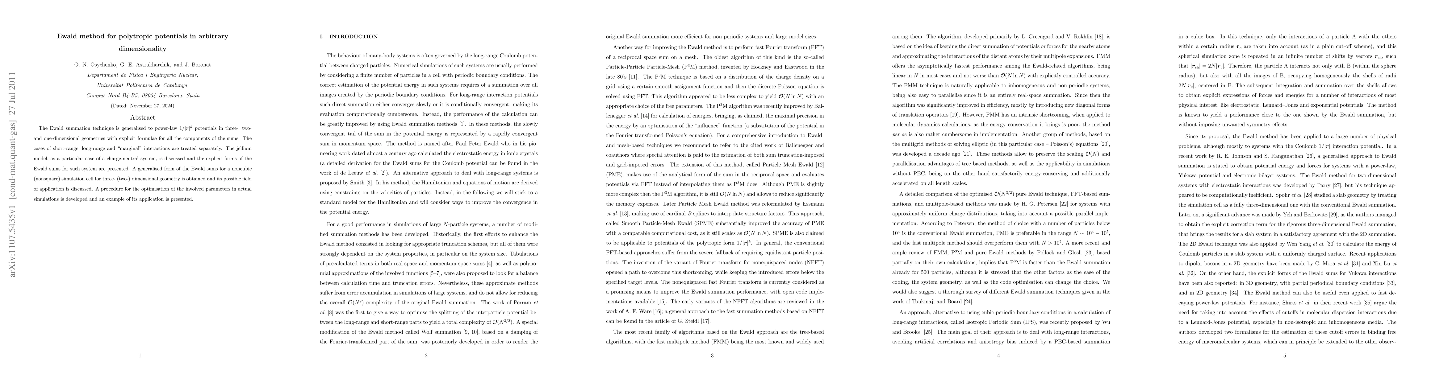 The Ewald summation technique is generalized to handle power-law potentials in 3D, 2D, and 1D geometries, enabling the simulation of short-range, long-range, and marginal interactions.
