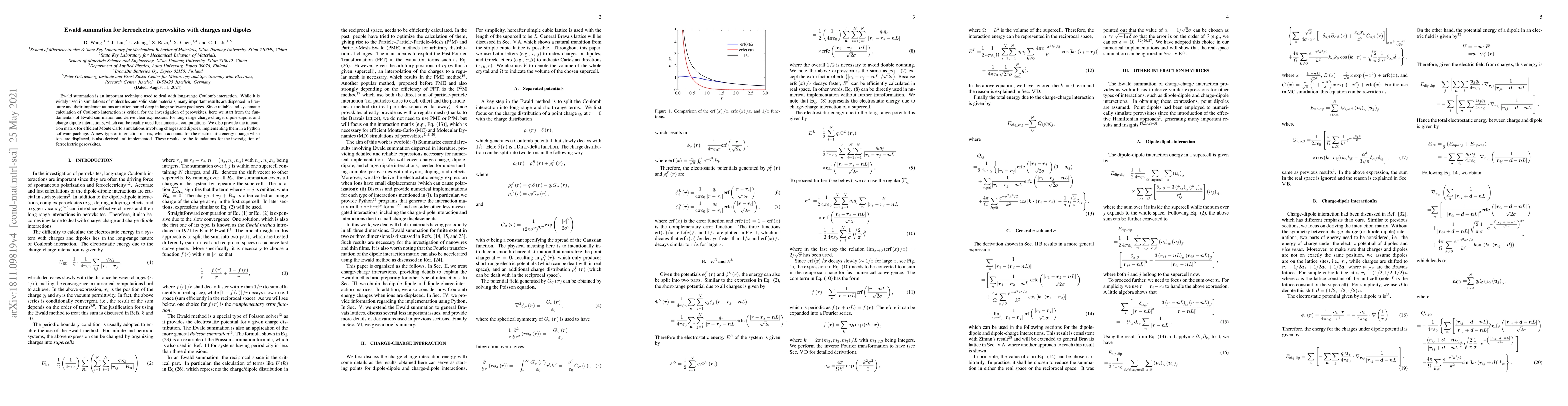 This paper derives clear expressions for Ewald summation techniques to handle long-range Coulomb interactions in ferroelectric perovskites, including charge-charge, dipole-dipole, and charge-dipole interactions. It also implements these methods in a Python software package for efficient Monte Carlo simulations.