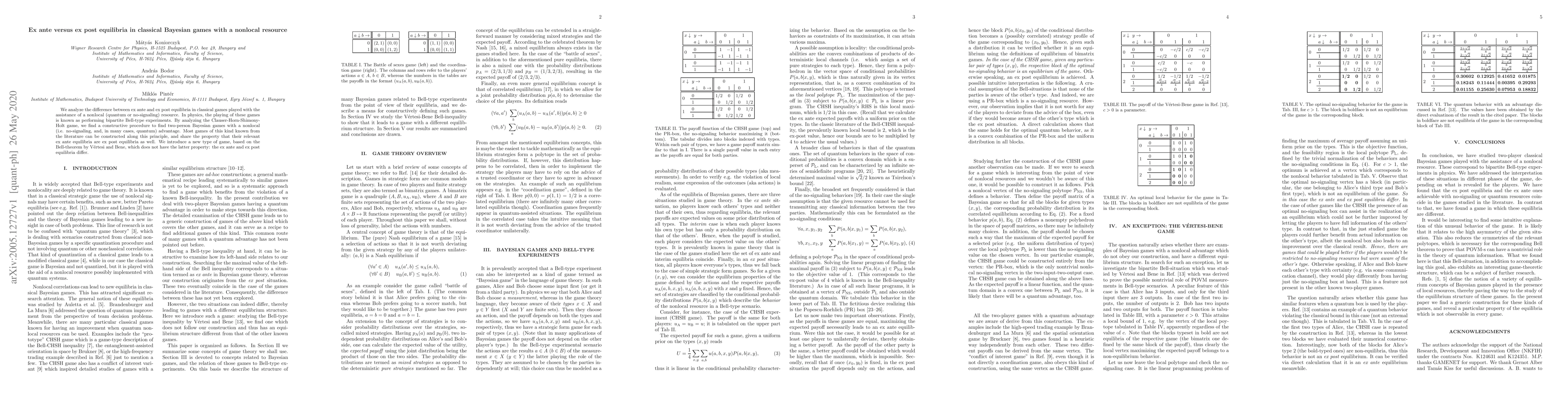 We analyze the difference between ex ante and ex post equilibria in classical games played with the assistance of a nonlocal (quantum or no-signaling) resource. In physics, the playing of these games is known as performing bipartite Bell-type experiments. By analyzing the Clauser-Horn-Shimony-Holt game, we find a constructive procedure to find two-person Bayesian games with a nonlocal (i.e. no-signaling, and, in many cases, quantum) advantage. Most games of this kind known from the literature can be constructed along this principle, and share the property that their relevant ex ante equilibria are ex post equilibria as well. We introduce a new type of game, based on the Bell-theorem by V\'ertesi and Bene, which does not have the latter property: the ex ante and ex post equilibria differ.