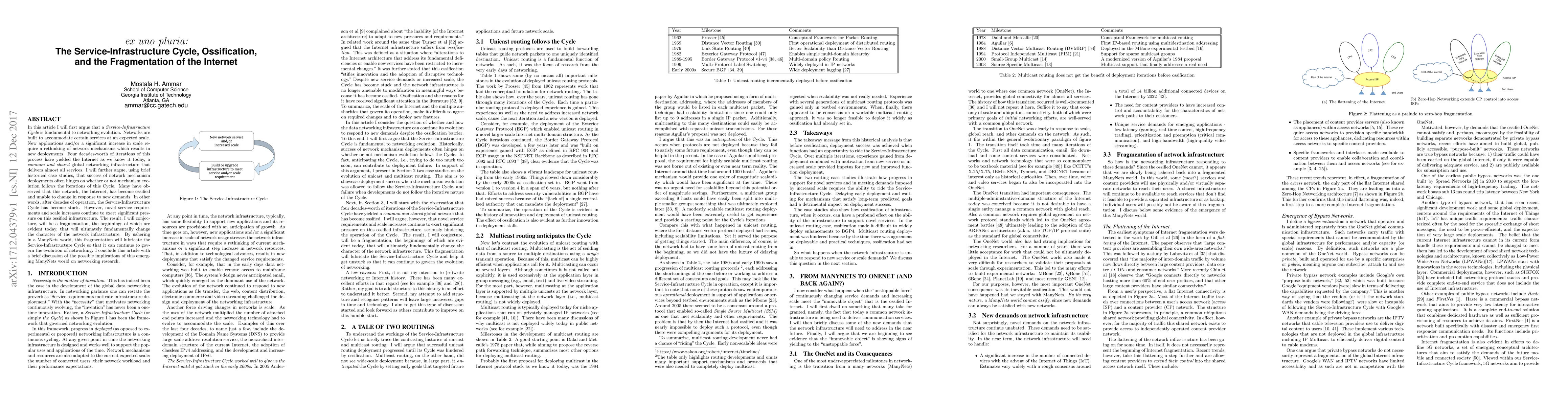 The Internet's Service-Infrastructure Cycle has become ossified, hindering its ability to adapt to new demands, but fragmentation is underway, which will eventually lead to a 'ManyNets' world that can govern the cycle's evolution.