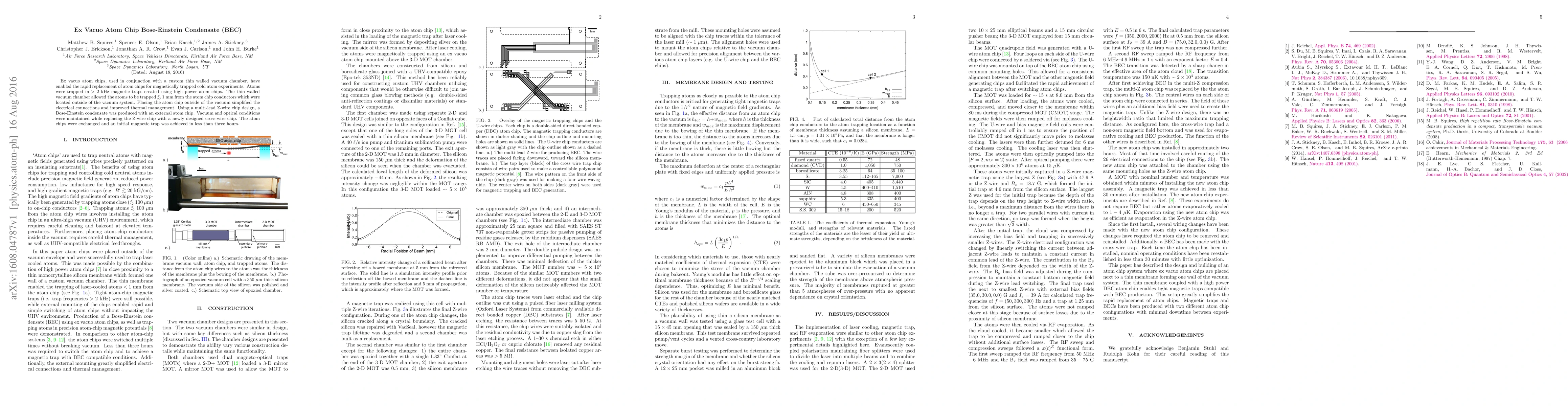 The paper presents a novel method for rapid replacement of atom chips in magnetically trapped cold atom experiments using ex vacuo atom chips and a custom thin-walled vacuum chamber, enabling the production of a BEC.