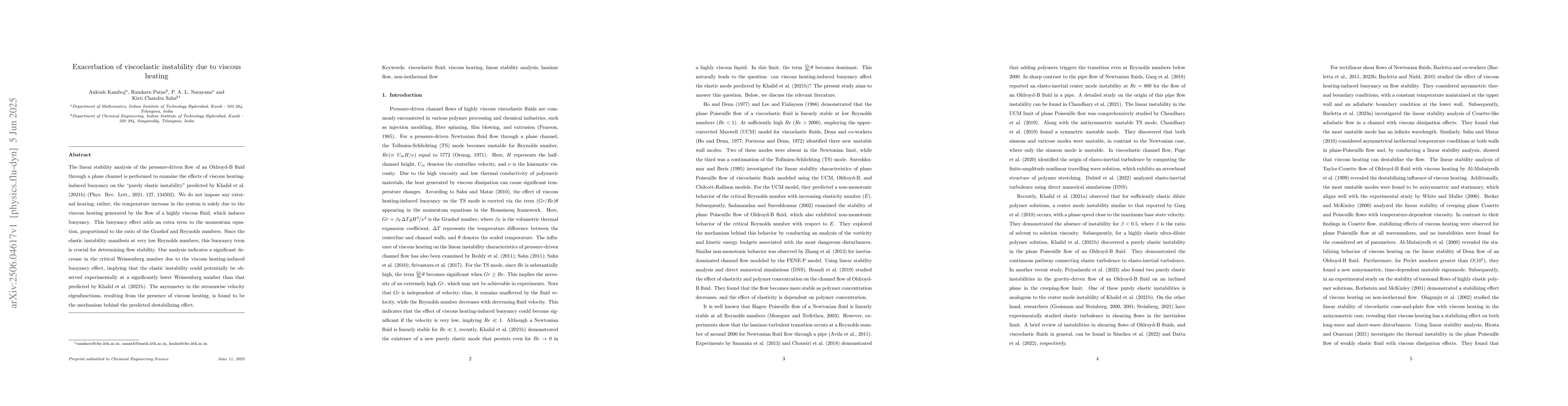 This study shows that heat generated by viscous flow can weaken the stability of certain fluid flows, making instabilities occur at lower flow conditions than previously thought. The findings suggest that viscous heating plays a crucial role in triggering flow instabilities in highly viscous fluids.