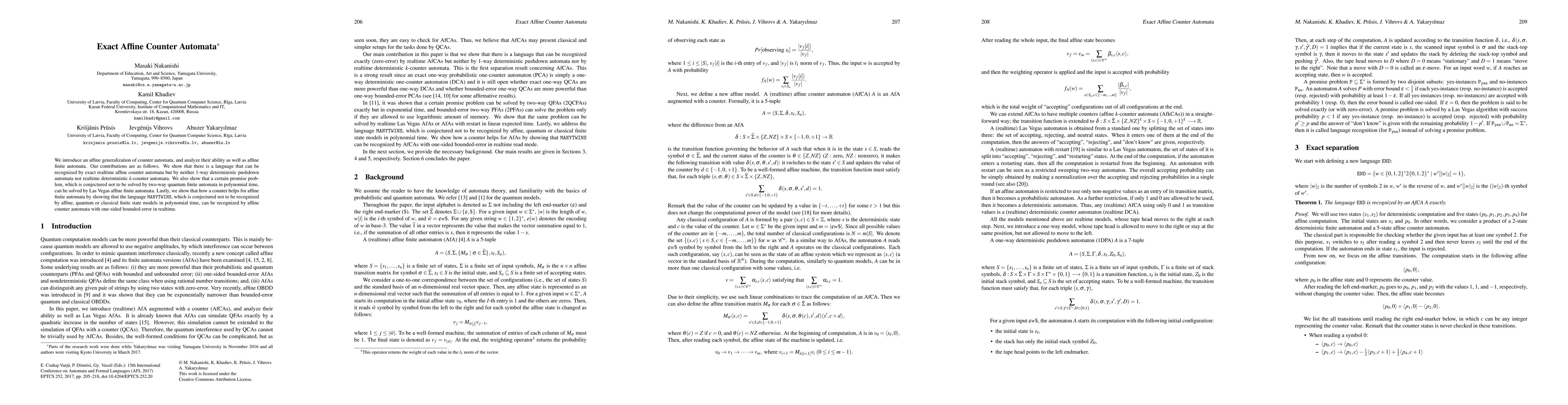 This paper generalizes counter automata to affine models and demonstrates their unique recognition capabilities. It shows that exact realtime affine counter automata can recognize certain languages unattainable by deterministic pushdown automata or k-counter automata, and solves a conjectured hard promise problem for quantum finite automata using Las Vegas affine finite automata.