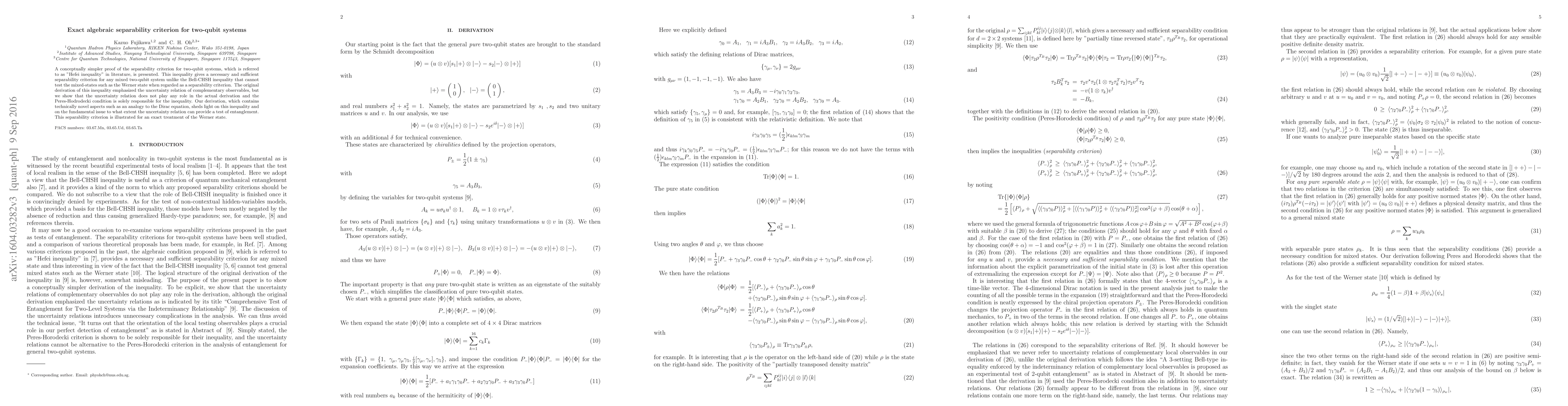 This paper presents a simplified proof for the "Hefei inequality," a necessary and sufficient separability criterion for two-qubit systems, which can test mixed states like the Werner state. Unlike the Bell-CHSH inequality, it clarifies that the uncertainty relation is not essential, attributing the inequality solely to the Peres-Horodecki condition.