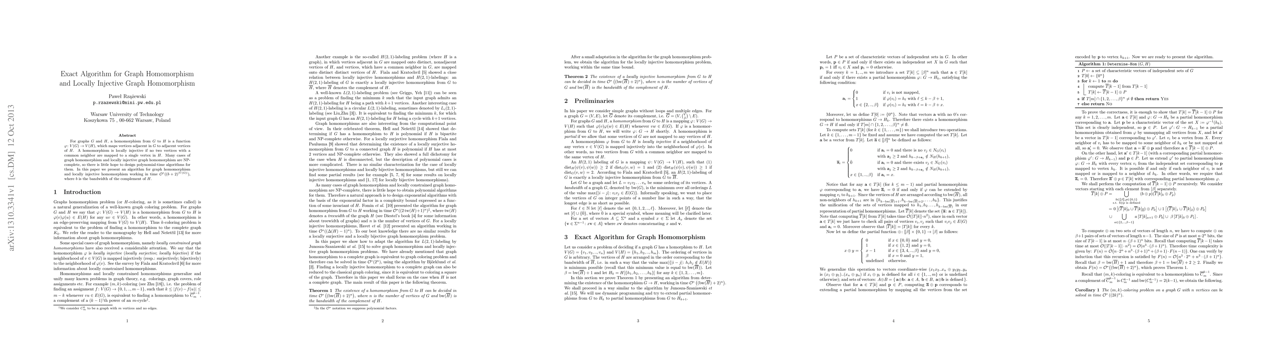This paper presents an exact algorithm for solving graph homomorphism and locally injective graph homomorphism problems in time $\mathcal{O}^*((b + 2)^{|V(G)|})$, where $b$ is the bandwidth of the complement of $H$. Despite many cases being NP-complete, this algorithm provides a solution for specific graph structures.
