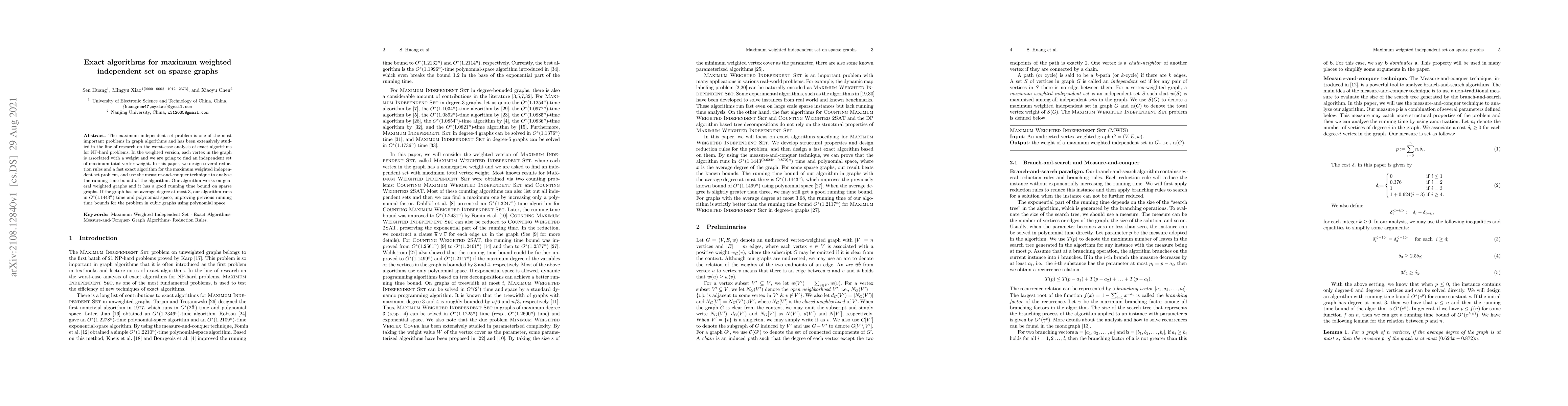 This paper presents an exact algorithm for solving the maximum weighted independent set problem on sparse graphs, employing reduction rules and the measure-and-conquer technique. The algorithm achieves an $O^*(1.1443^n)$ time bound for graphs with an average degree of at most 3, outperforming previous methods for cubic graphs.