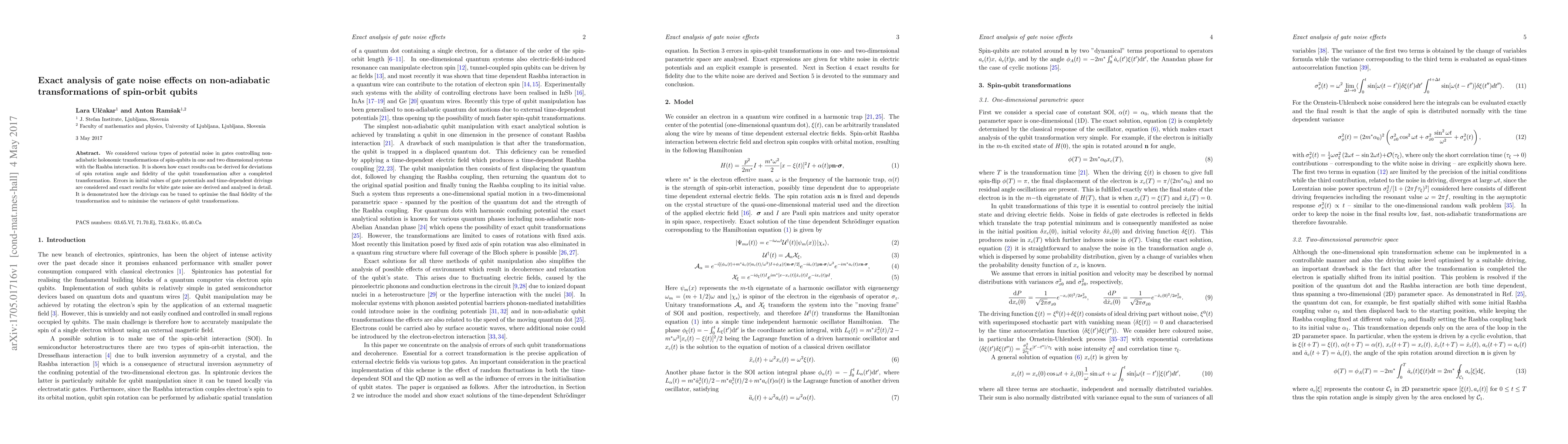 This research derives exact results for noise effects on non-adiabatic holonomic transformations of spin-qubits, considering various gate noise types. It shows how to optimize final fidelity and minimize variances in qubit transformations by adjusting drivings.