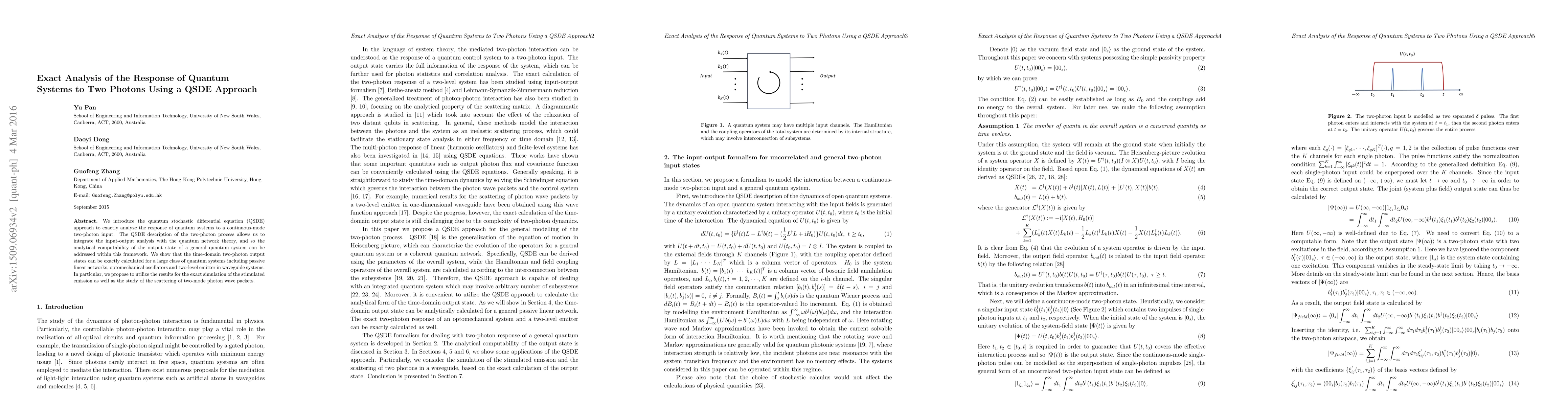 This paper employs a quantum stochastic differential equation (QSDE) approach to precisely analyze quantum systems' responses to two-photon inputs. The method integrates input-output analysis with quantum network theory, enabling exact computation of output states for various quantum systems, including passive linear networks and optomechanical oscillators.