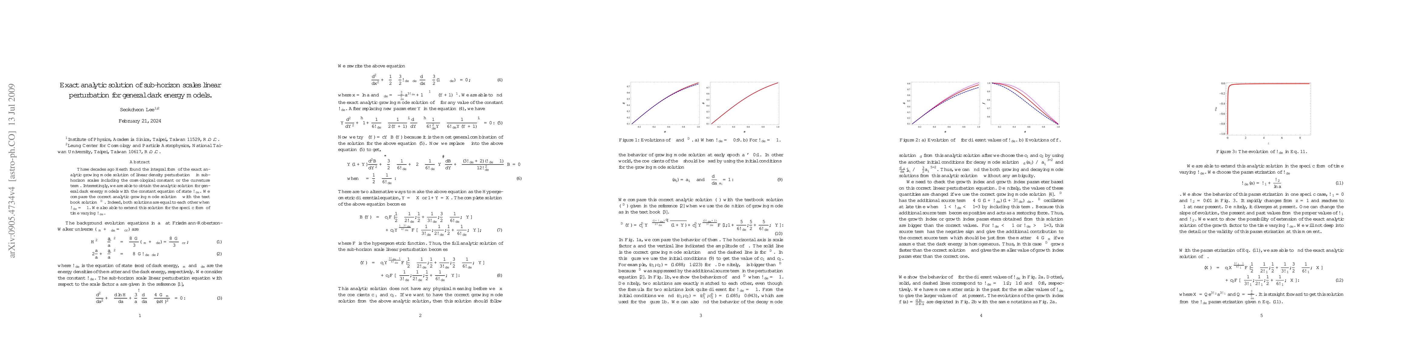This paper presents an exact analytic solution for linear density perturbations in sub-horizon scales for general dark energy models with a constant equation of state $\omega_{de}$. The study confirms that the derived solution matches the textbook solution when $\omega_{de} = -1$ and extends the solution to time-varying $\omega_{de}$.
