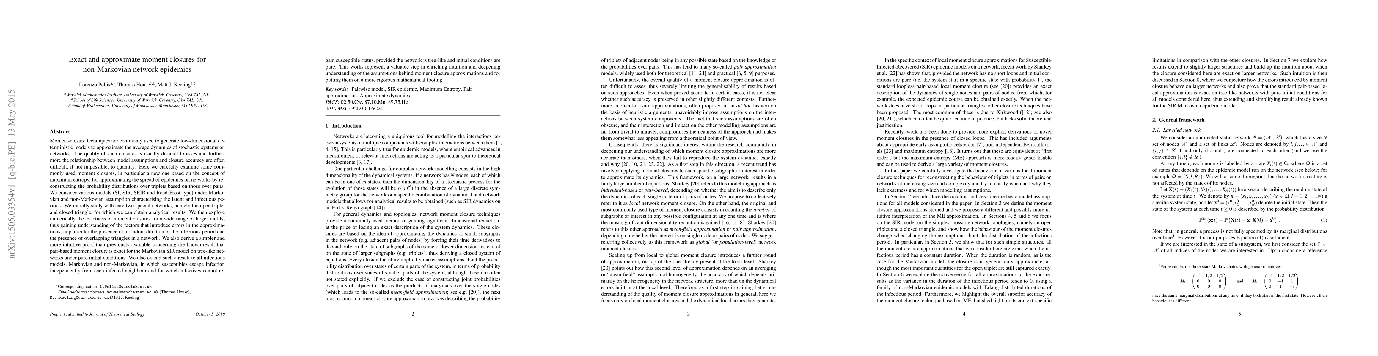 Moment-closure techniques are commonly used to generate low-dimensional deterministic models to approximate the average dynamics of stochastic systems on networks. The quality of such closures is usually difficult to asses and the relationship between model assumptions and closure accuracy are often difficult, if not impossible, to quantify. Here we carefully examine some commonly used moment closures, in particular a new one based on the concept of maximum entropy, for approximating the spread of epidemics on networks by reconstructing the probability distributions over triplets based on those over pairs. We consider various models (SI, SIR, SEIR and Reed-Frost-type) under Markovian and non-Markovian assumption characterising the latent and infectious periods. We initially study two special networks, namely the open triplet and closed triangle, for which we can obtain analytical results. We then explore numerically the exactness of moment closures for a wide range of larger motifs, thus gaining understanding of the factors that introduce errors in the approximations, in particular the presence of a random duration of the infectious period and the presence of overlapping triangles in a network. We also derive a simpler and more intuitive proof than previously available concerning the known result that pair-based moment closure is exact for the Markovian SIR model on tree-like networks under pure initial conditions. We also extend such a result to all infectious models, Markovian and non-Markovian, in which susceptibles escape infection independently from each infected neighbour and for which infectives cannot regain susceptible status, provided the network is tree-like and initial conditions are pure. This works represent a valuable step in deepening understanding of the assumptions behind moment closure approximations and for putting them on a more rigorous mathematical footing.