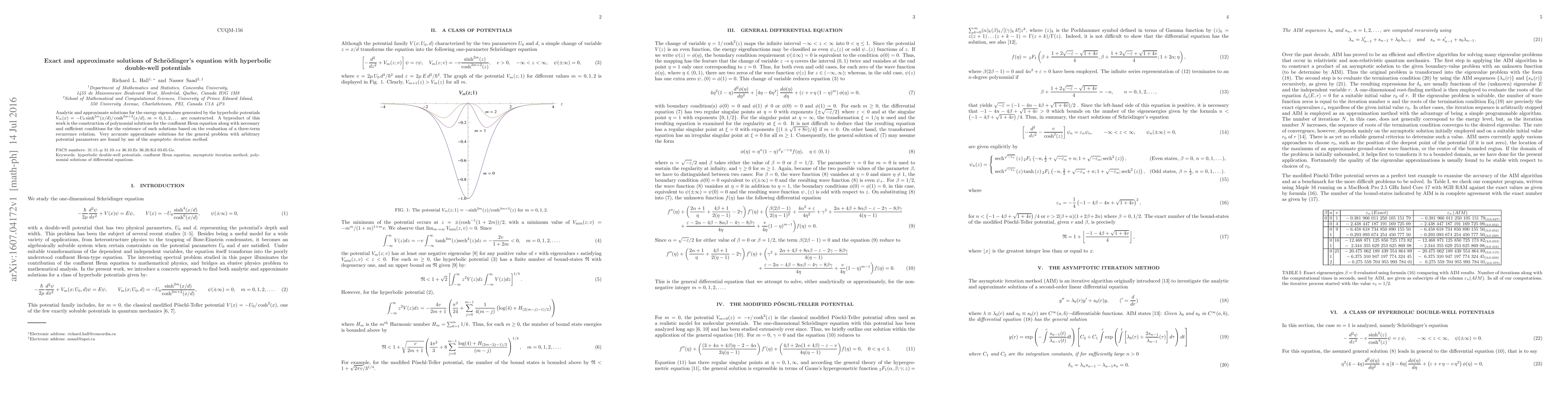 This paper constructs analytic and approximate solutions for energy eigenvalues of Schrödinger's equation with hyperbolic double-well potentials. It also develops polynomial solutions for the confluent Heun equation and finds accurate approximate solutions using the asymptotic iteration method.