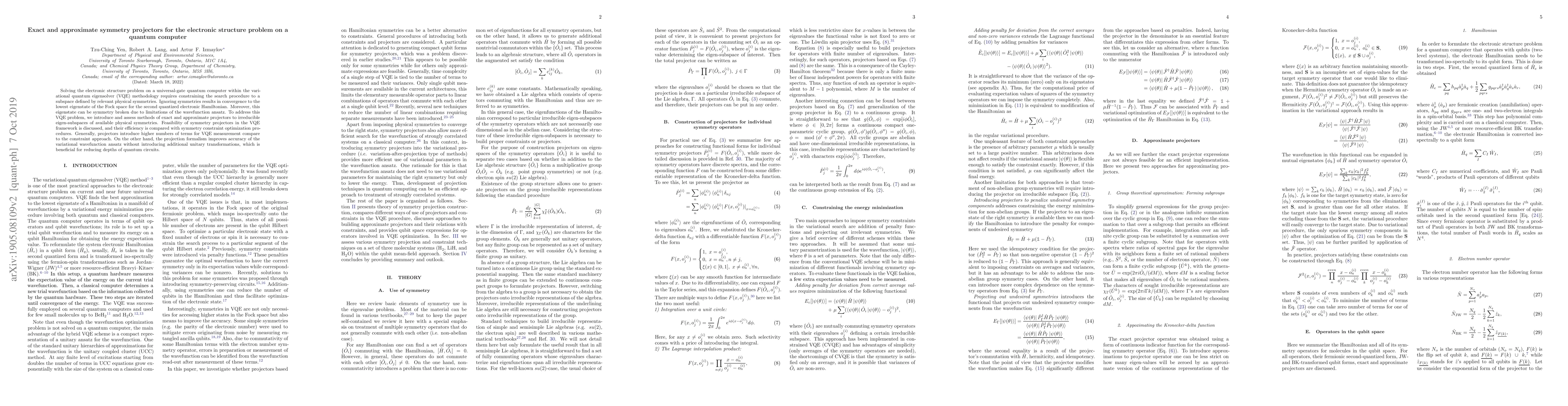 This paper introduces methods for exact and approximate symmetry projectors to improve the variational quantum eigensolver (VQE) for solving the electronic structure problem on a quantum computer. While projectors increase the number of terms in VQE measurements, they enhance the accuracy of the variational wavefunction ansatz without additional unitary transformations, thus reducing quantum circuit depths.