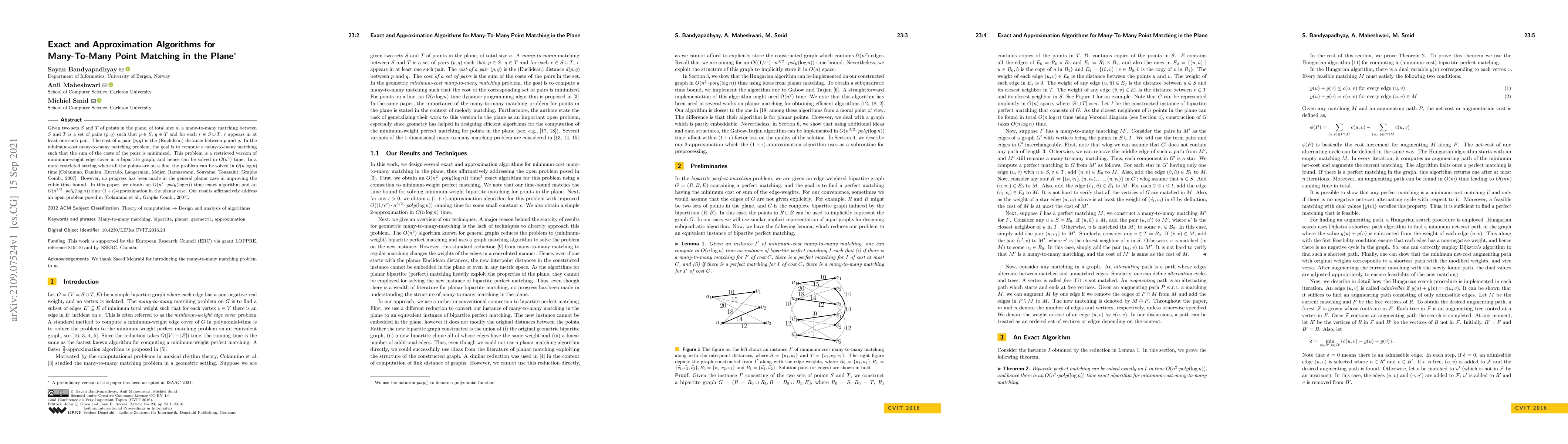 This paper presents a new algorithm for minimizing costs in many-to-many point matching on a plane, achieving improved times for both exact and approximation algorithms compared to previous cubic time bounds.