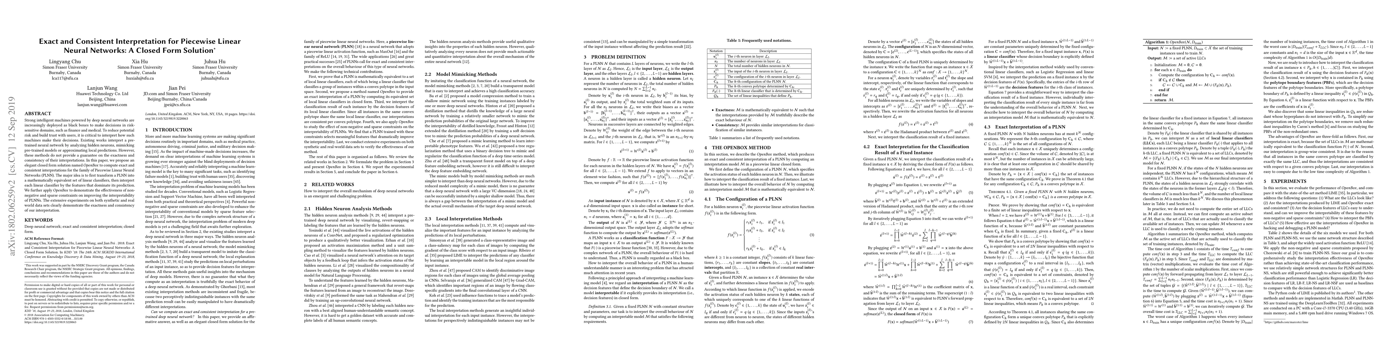 Strong intelligent machines powered by deep neural networks are increasingly deployed as black boxes to make decisions in risk-sensitive domains, such as finance and medical. To reduce potential risk and build trust with users, it is critical to interpret how such machines make their decisions. Existing works interpret a pre-trained neural network by analyzing hidden neurons, mimicking pre-trained models or approximating local predictions. However, these methods do not provide a guarantee on the exactness and consistency of their interpretation. In this paper, we propose an elegant closed form solution named $OpenBox$ to compute exact and consistent interpretations for the family of Piecewise Linear Neural Networks (PLNN). The major idea is to first transform a PLNN into a mathematically equivalent set of linear classifiers, then interpret each linear classifier by the features that dominate its prediction. We further apply $OpenBox$ to demonstrate the effectiveness of non-negative and sparse constraints on improving the interpretability of PLNNs. The extensive experiments on both synthetic and real world data sets clearly demonstrate the exactness and consistency of our interpretation.