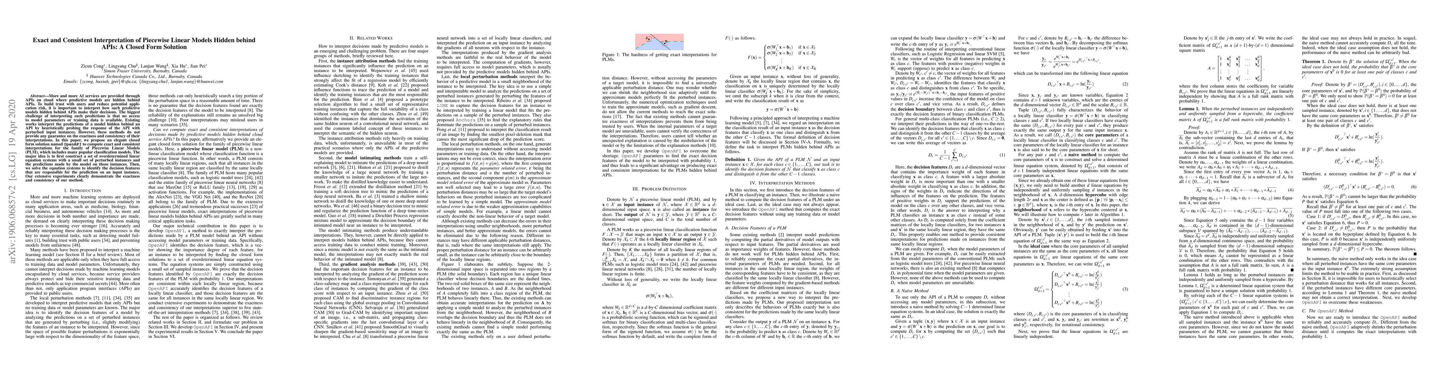 A new method called OpenAPI provides exact and consistent interpretations of predictive models hidden behind APIs, enabling trust in AI decision-making without access to model parameters or training data.