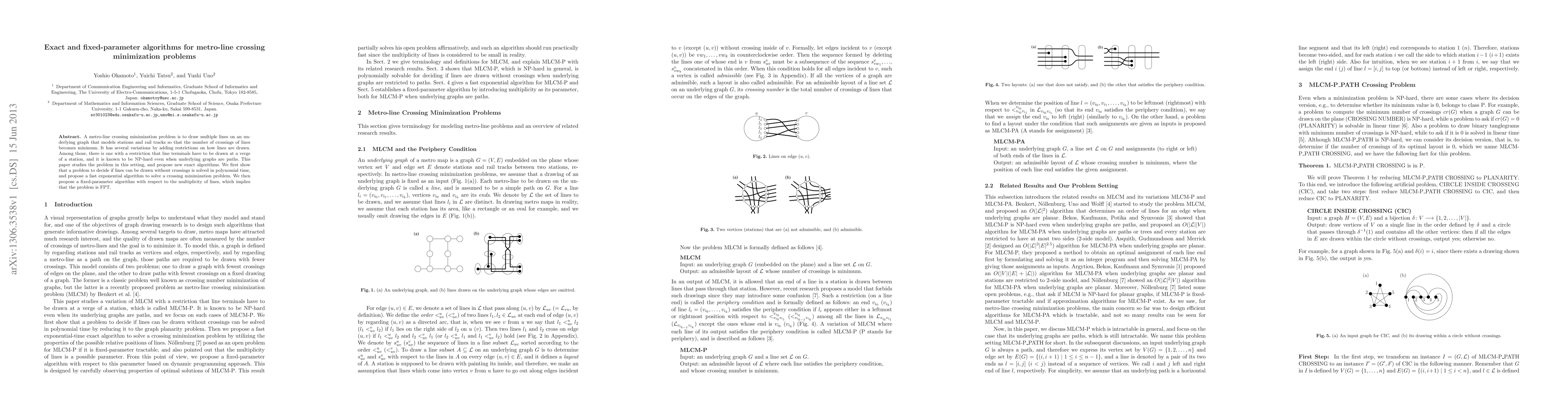 This paper proposes exact and fixed-parameter algorithms for minimizing metro-line crossings on underlying graphs, focusing on a variant where line terminals must be at station edges. It presents a polynomial-time solution for the crossing-free case and a fast exponential algorithm for general crossing minimization, along with an FPT algorithm based on line multiplicity.