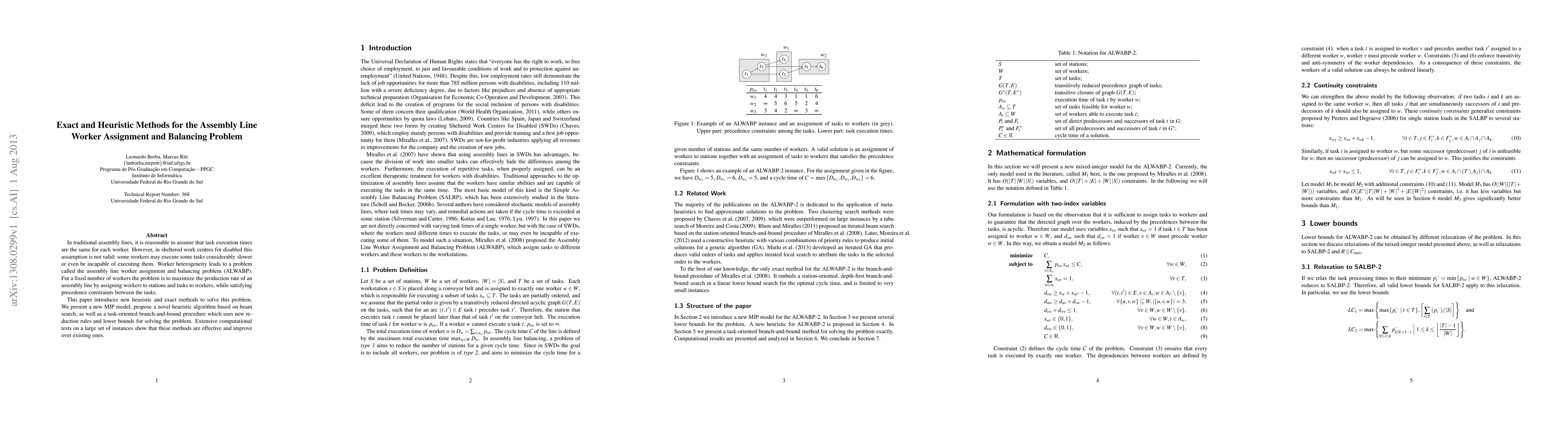 This paper proposes new exact and heuristic methods to solve the assembly line worker assignment and balancing problem (ALWABP), where workers have different task execution speeds. It introduces a new MIP model, a beam search heuristic, and a task-oriented branch-and-bound procedure, demonstrating their effectiveness through extensive computational tests.