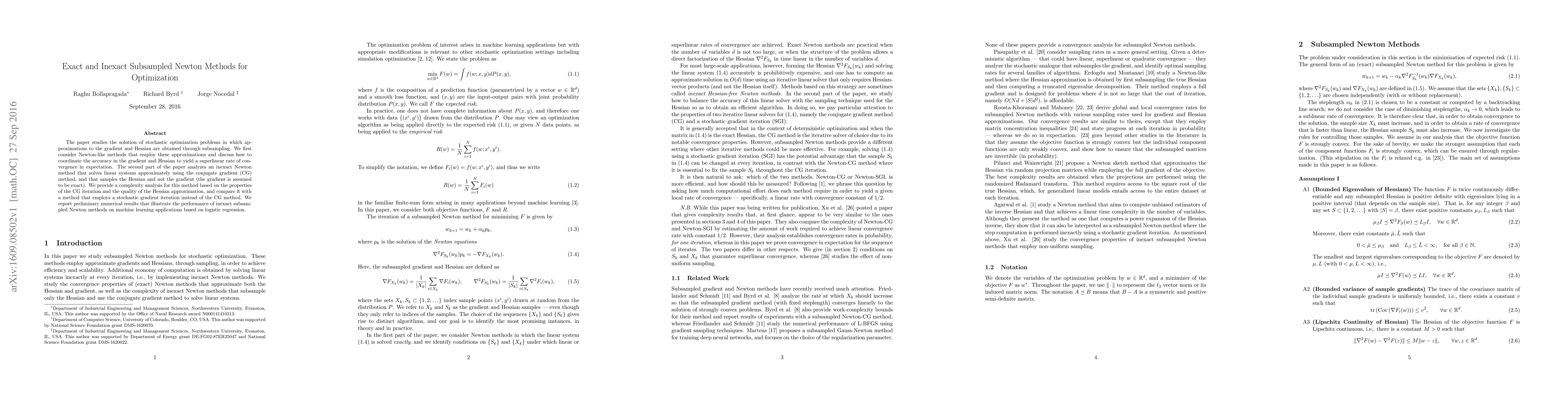 This paper explores subsampled Newton methods for solving stochastic optimization problems, focusing on both exact and inexact approximations of gradient and Hessian. It achieves superlinear convergence by coordinating approximation accuracy and analyzes an inexact method using conjugate gradient for linear systems, comparing it to a stochastic gradient method.